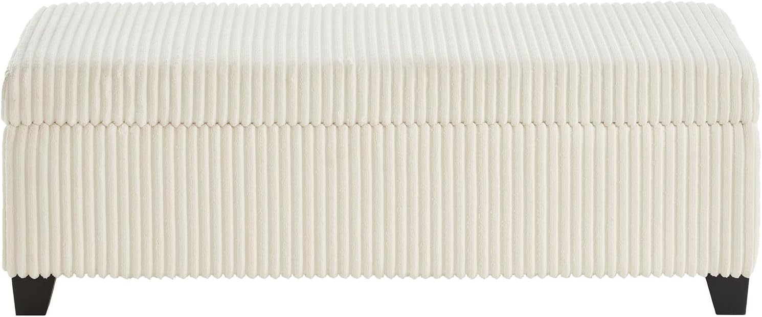 48" Ottoman with Storage, Corduroy Storage Ottoman Bench for Bedroom, End of Bed Bench with Safety Hinge for Living Room, Bedroom, Entryway, White