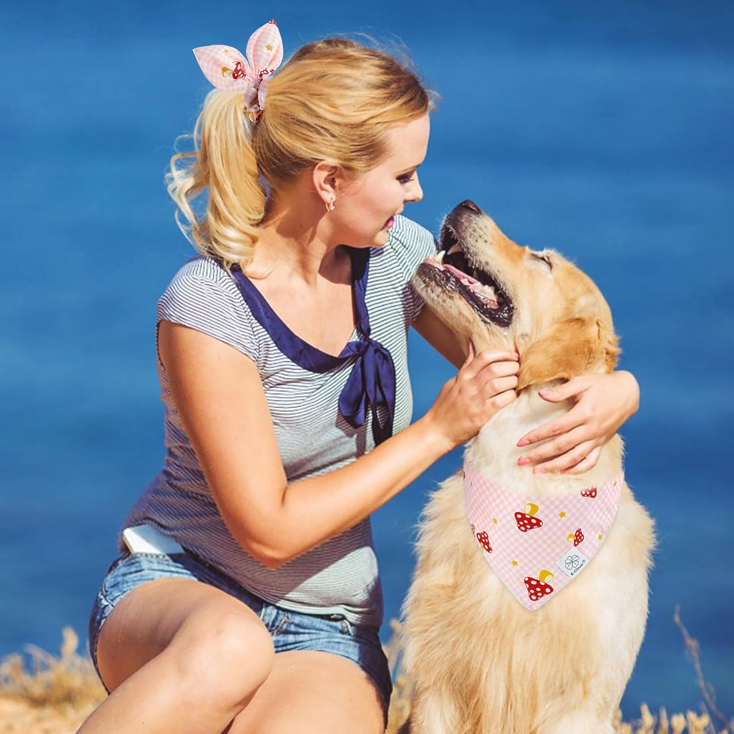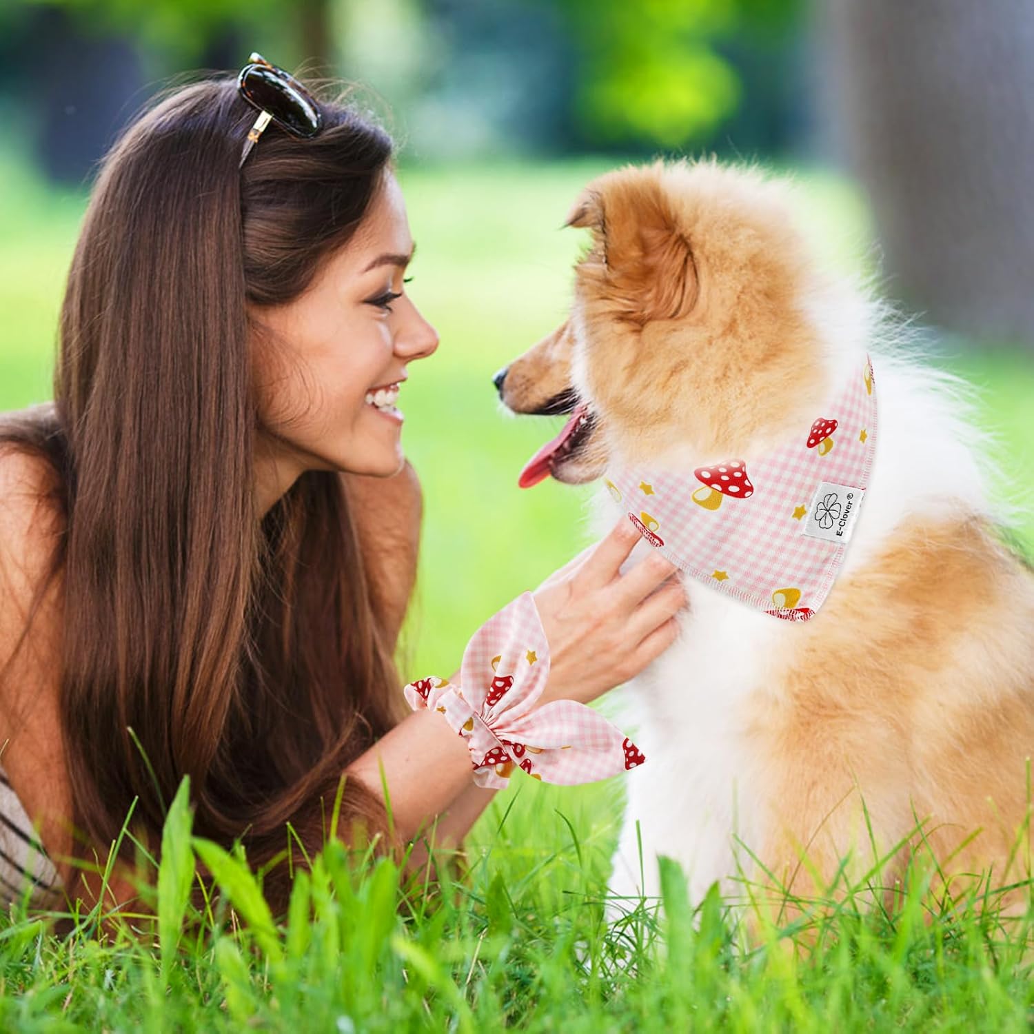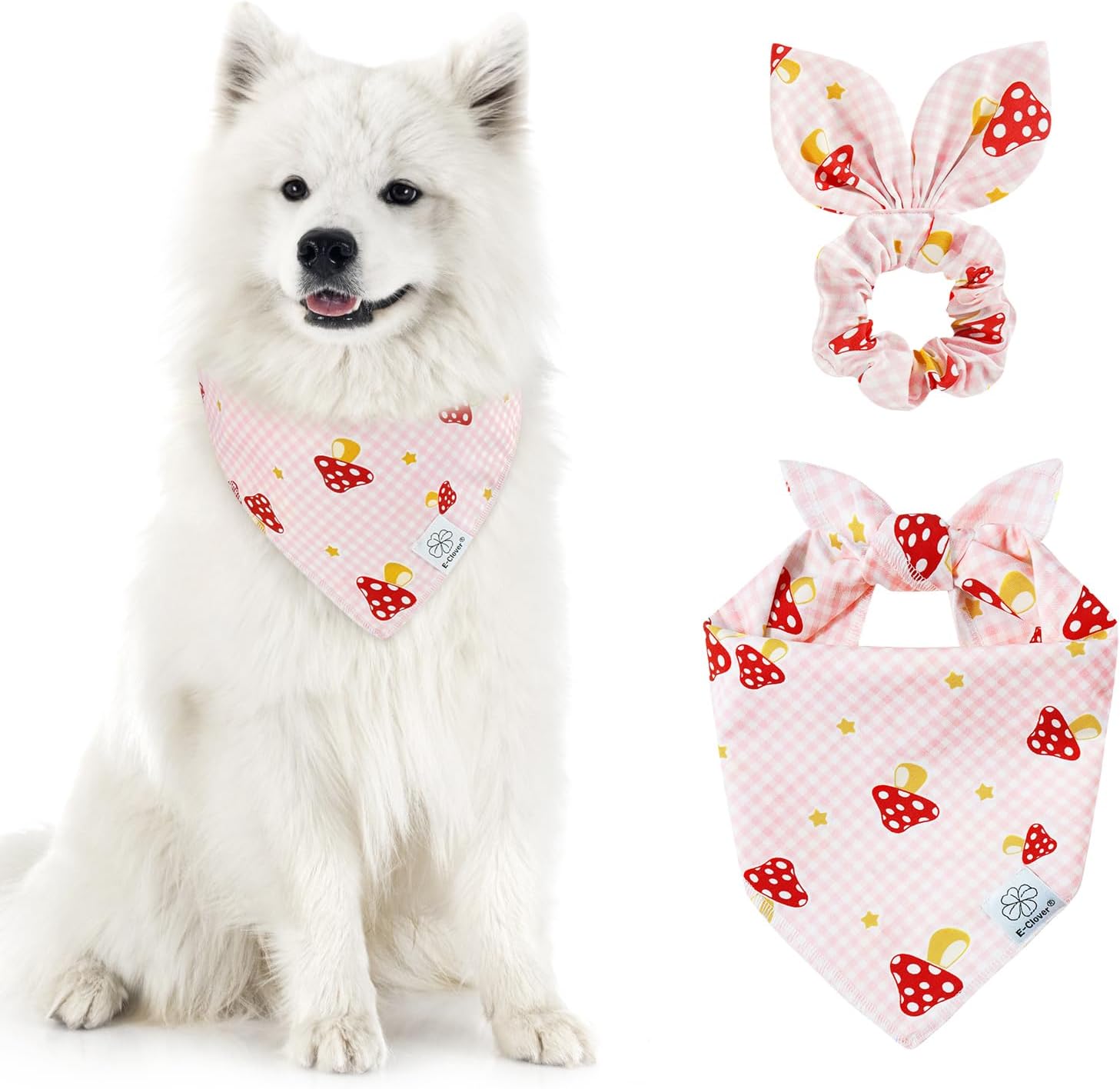 - Matching Bandana and Scrunchie Set- Itβs full of love when your pets is wearing the pink plaid bandanas and you are wearing the bow scrunchies. When traveling, sleeping, taking photos or daily warking, adorable dog spring bandana and scrunchie is a pretty accessories. The the hair tie can be worn as a wrist accessory and hold your hair. Beautiful dog drool bibs and scrunchie with pink buffalo plaid and mushrooms pattern, itβs nice photo props.