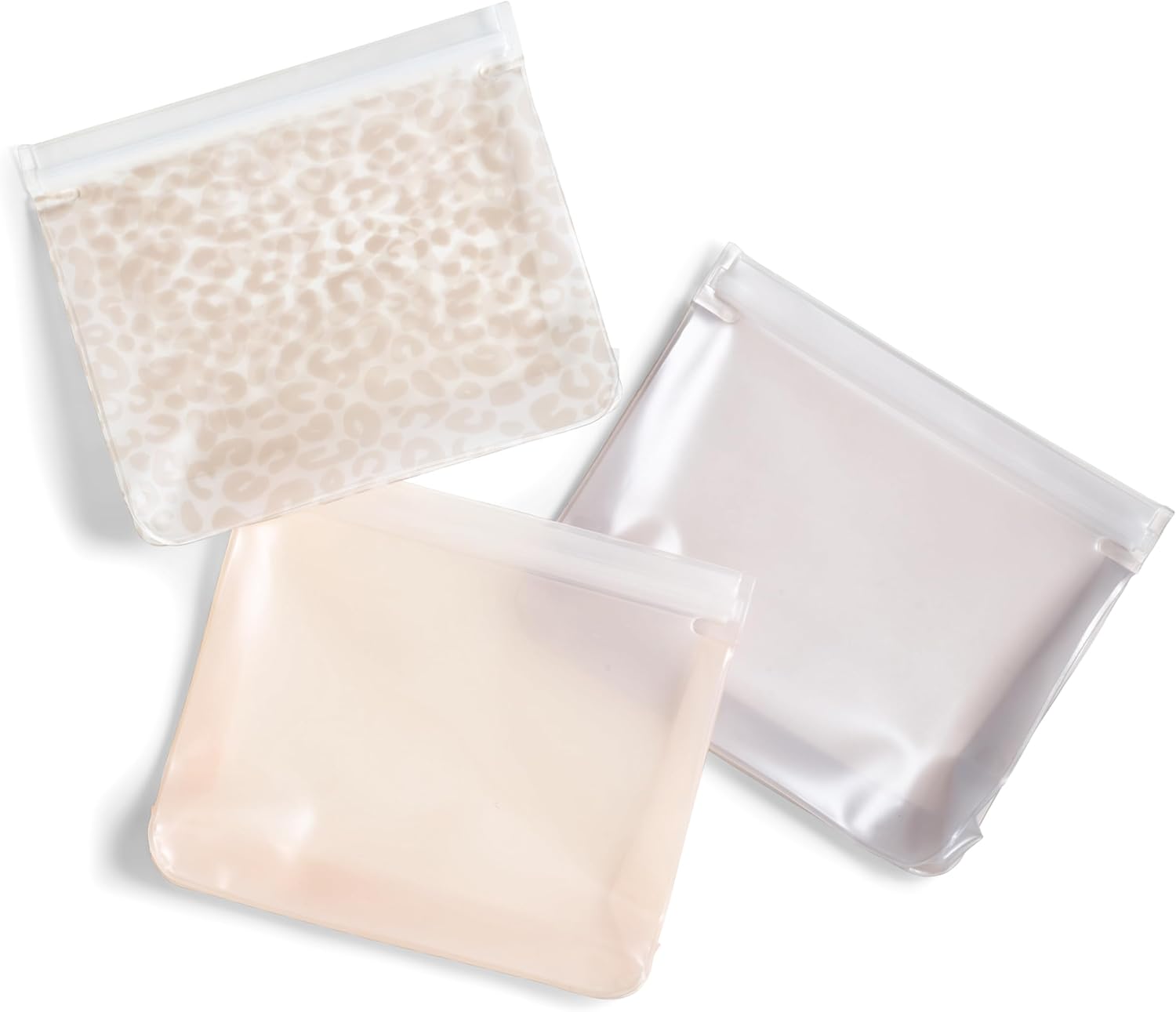 - REUSABLE PEVA BAGS - Set includes 3 reusable storage bags measuring at 8.5β x 2β x 7.5.β Ditch single-use plastic bags, save up to 300 plastic baggies with just one of our reusable bags. Great for storing sandwiches, snacks, & all the small things!