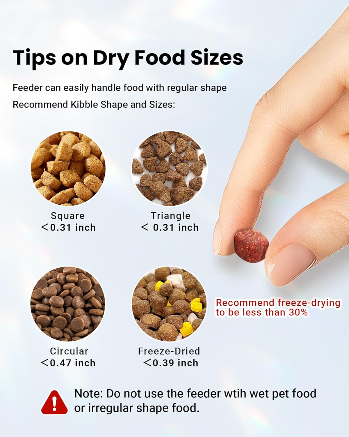 - Voice Calling & Emergency Power: Record a 10-second message to call your pet to meals. Equipped with AAA batteries for up to 7 days of backup during power outages(batteries not included)
