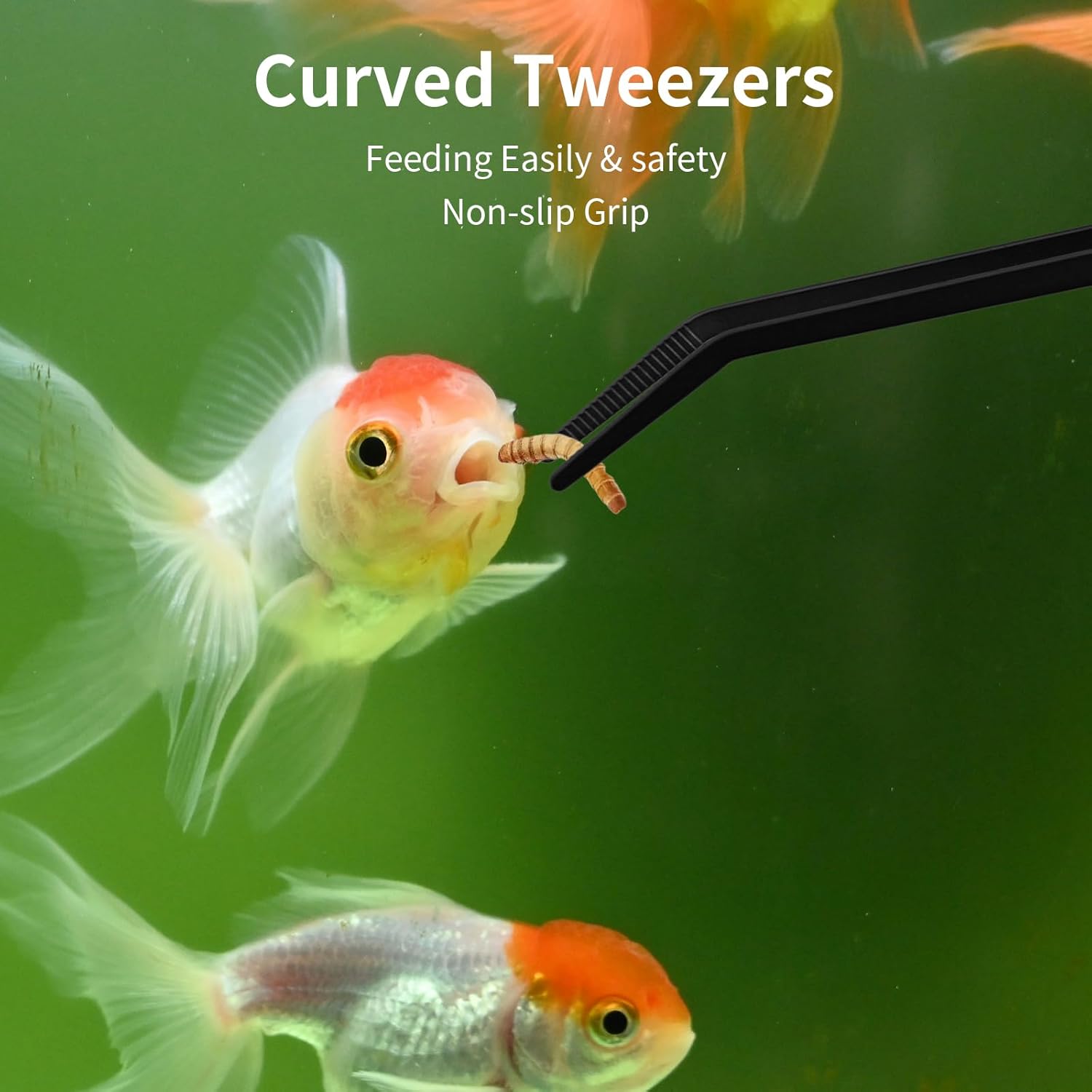 - Perfect Design - The handle of aquarium scissors is ergonomically designed, and the tip is sharp enough not only to trim excess parts of live aquarium plants, but also for other gardening projects, such as pruning plants. This long tweezers for aquarium both have serrated tips with non-slip, helping you handle delicate plants without damaging them, or being used to feed reptiles without hurting their mouths. The aquarium algae scraper is blunt enough to not scratch your fish tank when used.
