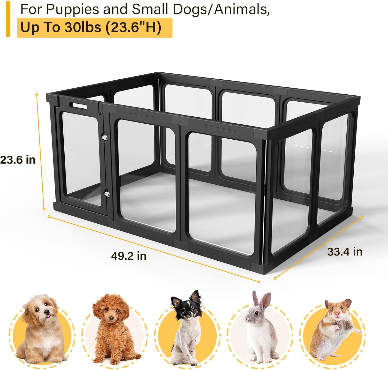 - 【Clear Dog Playpen】Our black dog playpen is designed with transparent acrylic panels that allow you to keep an eye on your furry friends while they enjoy their playtime. The clear design ensures maximum visibility and blends seamlessly into any home decor.