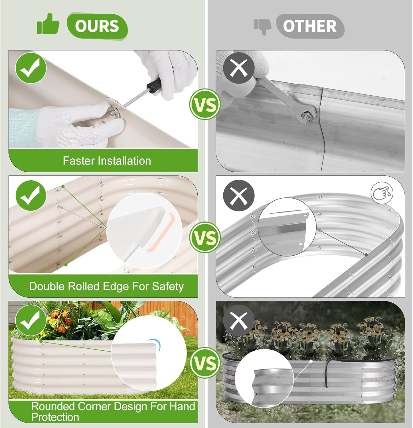 - 【Upgrade Quality & Structure 】The raised garden bed is made of thick galvanized metal with a surface spray coating, which is rust proof and anti-corrosion. Can be used for a long time. The oval design ensures uniform surface force and prevents deformation. More durable than other raised planter box, becoming a good helper for your garden