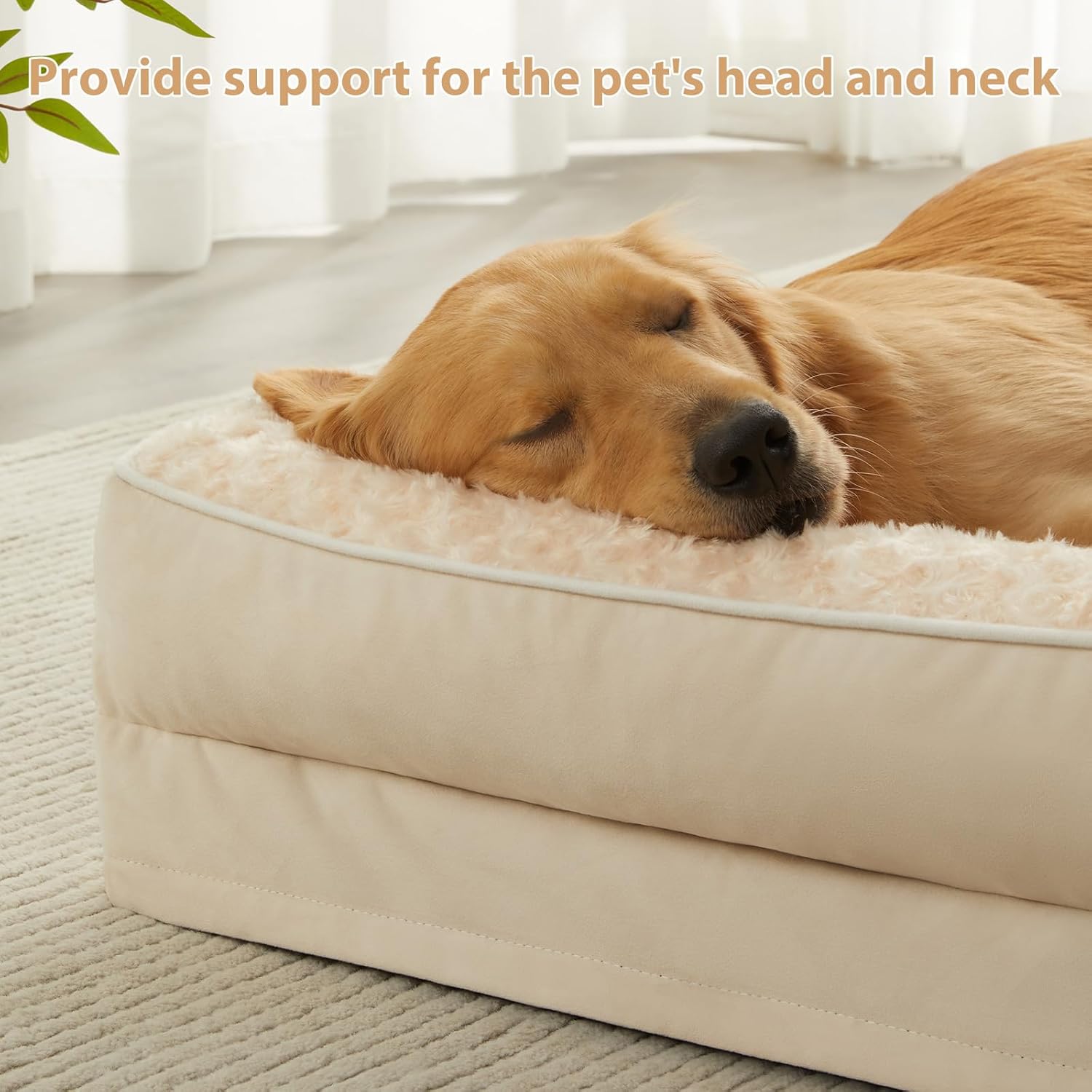 - SOFT SURFACE&WATERPROOF: The surface of the large dog beds is made of soft and cozy high-quality fluff. The pet bed is pleasant to the touch, non-pilling, and gentle on sensitive dogs' skin, noses, and paws. There is a waterproof layer in the dog couch bed mezzanine cover to prevent liquids from dampening the egg foam.