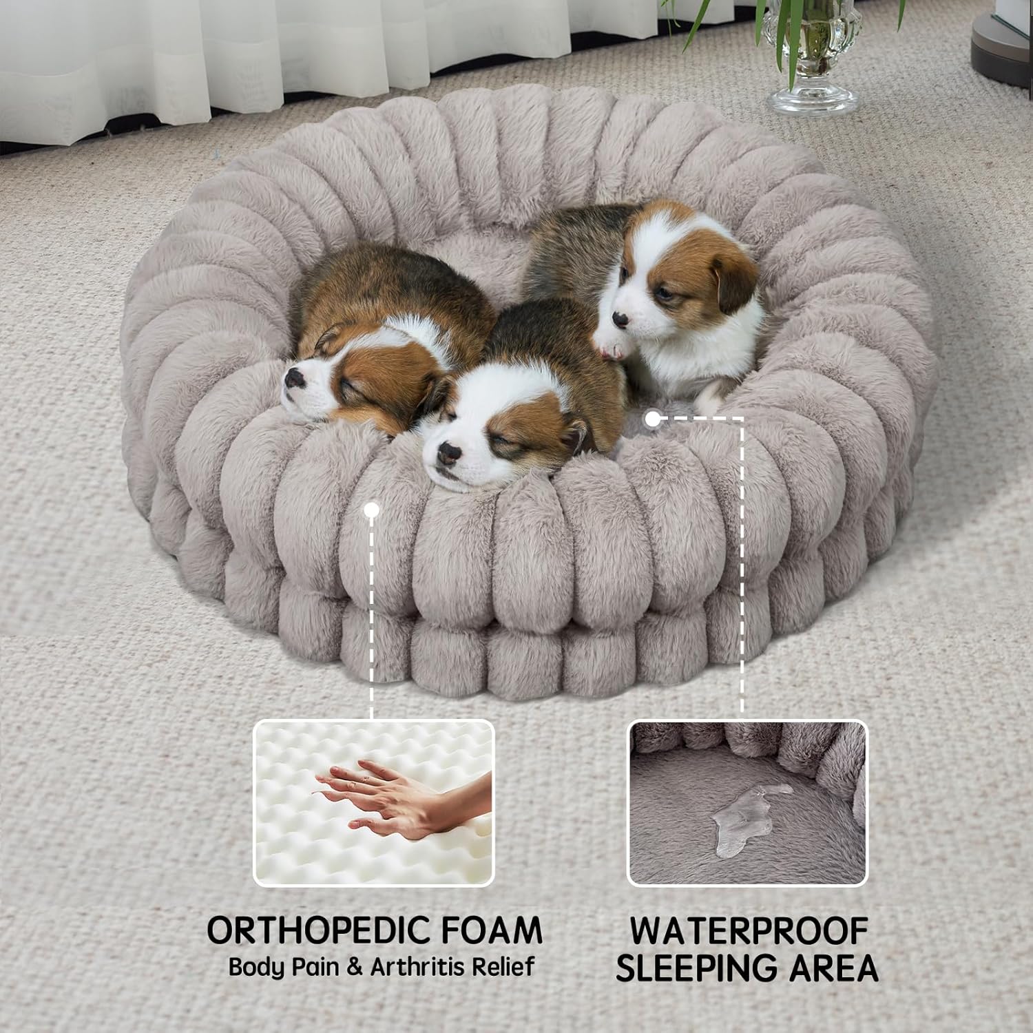 - Superior Support: The bottom of dog bed is filled with a whole piece of egg crate sponge, which always maintains a stable shape. This calming dog bed provides strong support for pets and effectively relieves muscle and joint pain