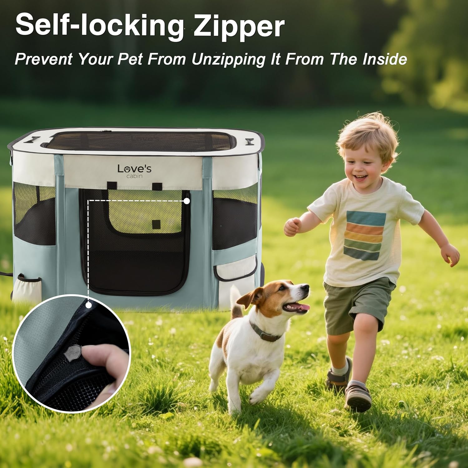 Love's cabin Pet Puppy Dog Playpen, Small Dog Tent Crates Cage Indoor/Outdoor, Portable Exercise Playpen for Cat, Foldable Pop Up Dog Kennel Playpen with Carring Case (S, Gray Green)