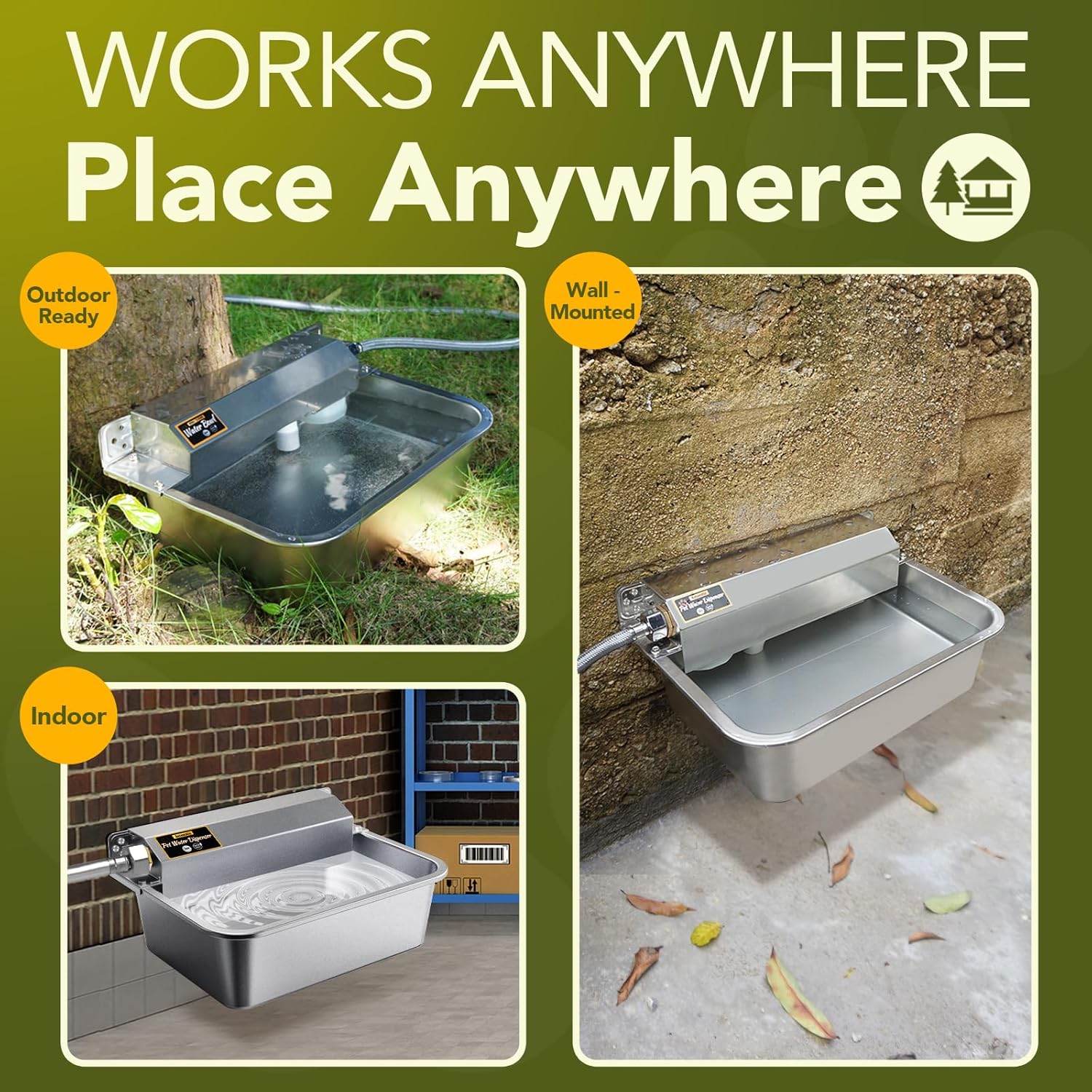 - Versatile Use: This stainless steel animal water bowl provides a steady water supply for dogs, stray cats, rabbits, poultry, livestock, and small animals. Itβs ideal for use in farms, gardens, dog parks, and more
