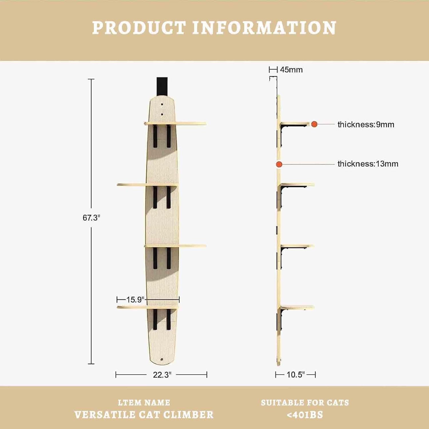 - Charming and Functional Wall Furniture: Elevate your home decor with our wooden cat shelves that blend seamlessly into any interior style. This tall, elegant cat climber not only provides a cozy retreat for your furry companions but also adds a touch of sophistication to your living space.