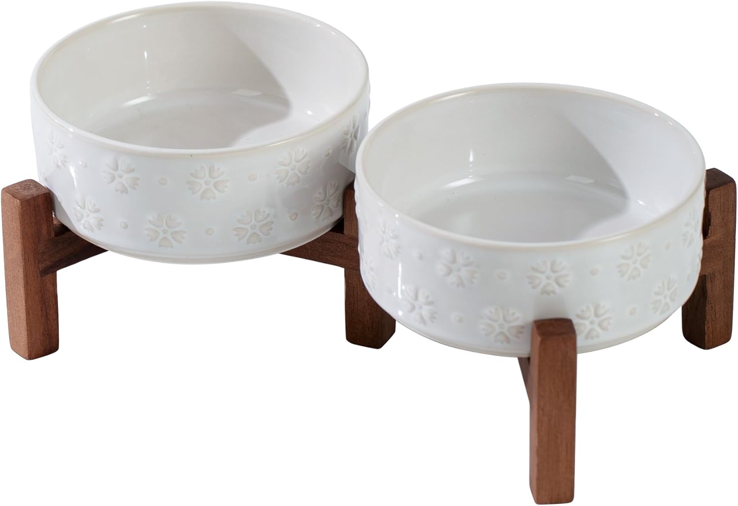 - Acacia Wood Stand: Adopting with classy acacia wood stand, this aesthetically pleasing ceramic dog bowls with stand fits perfectly with any home decor style. By flipping the stand over , you can get 2 different heights to hold the pet bowl. Letβs elevated bowl company with your pet in different growth stages.