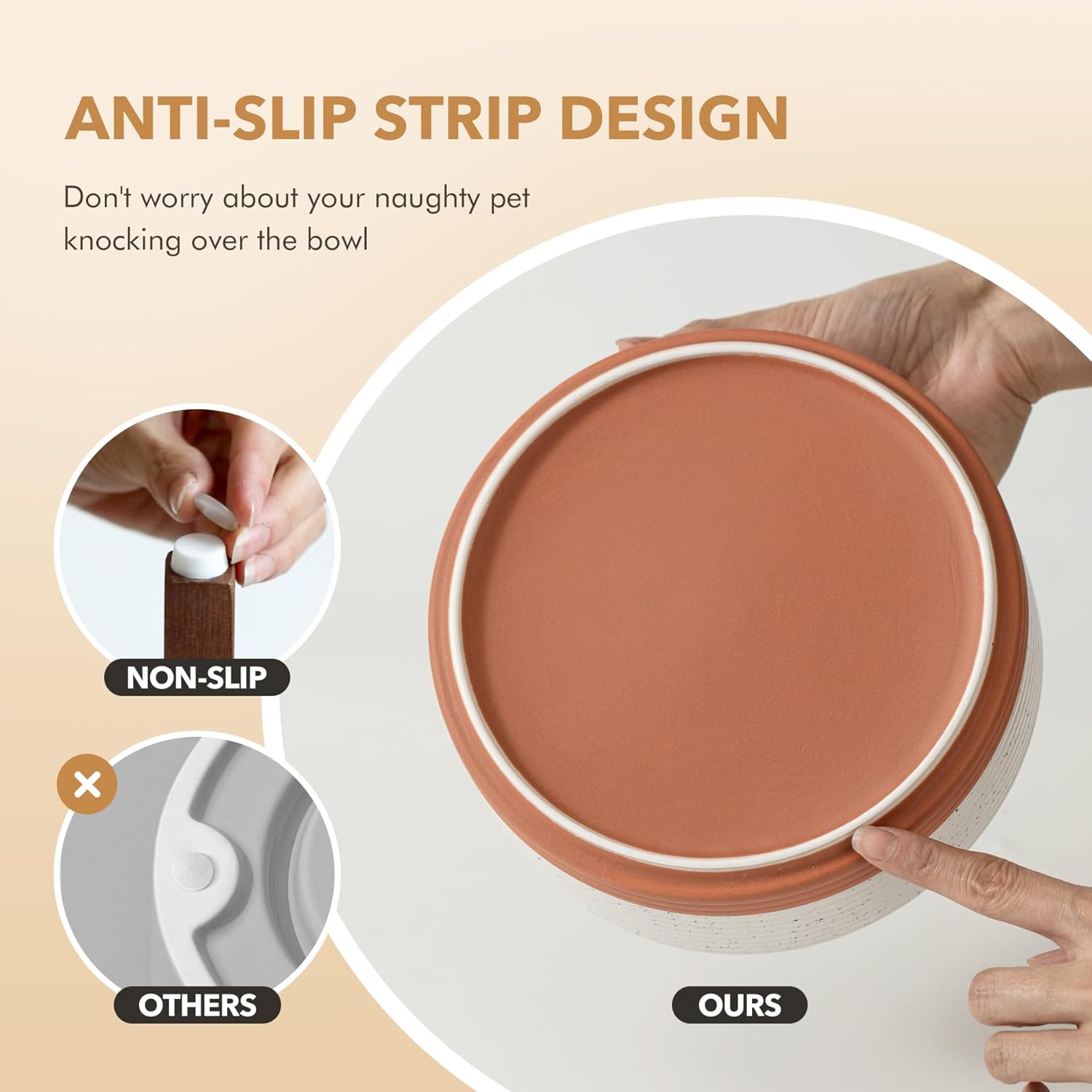 - Stable and Anti-Slip: Ceramic bowl is heavy and stable, and the anti-slip strip at the bowl's bottom can prevent bowl from sliding while your pet eating.