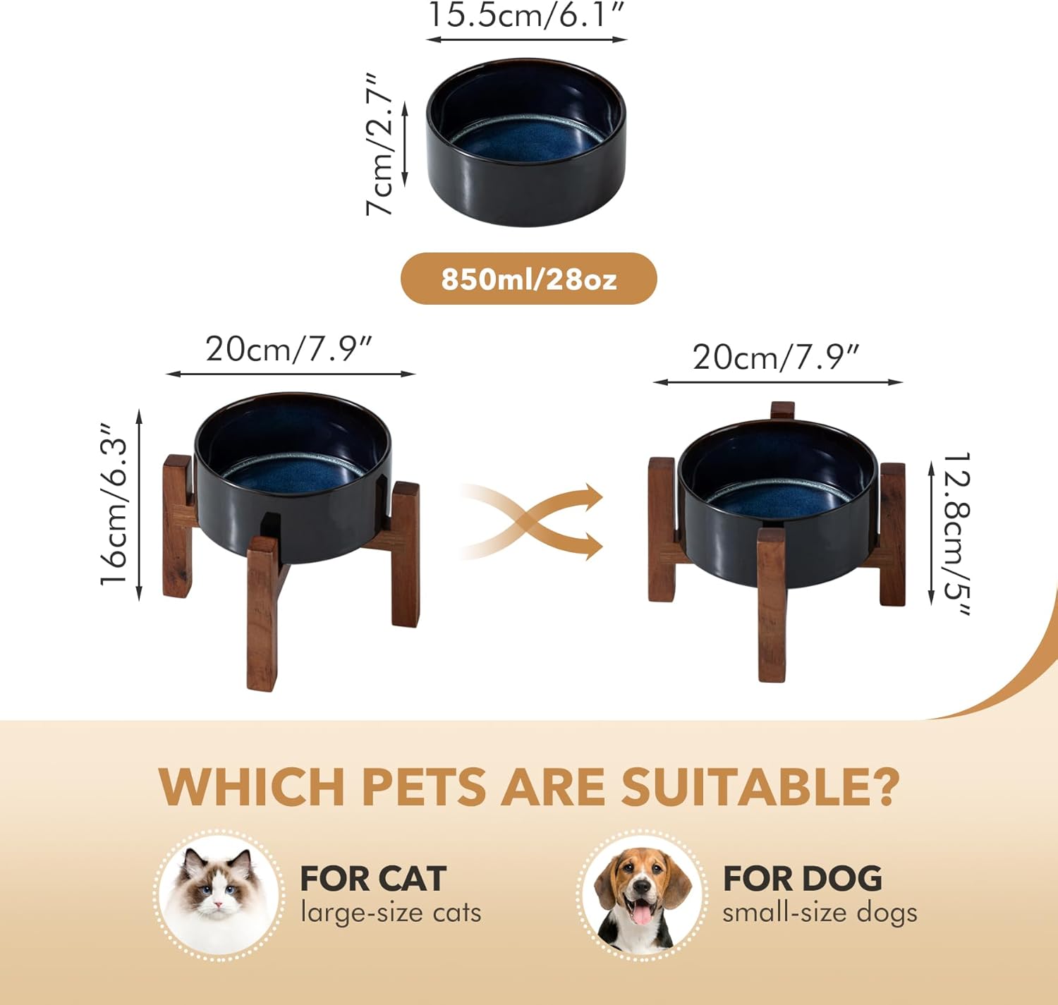 - Acacia Wood Stand: Adopting with classy acacia wood stand, this aesthetically pleasing ceramic dog bowls with stand fits perfectly with any home decor style. By flipping the stand over , you can get 2 different heights to hold the pet bowl. Letβs elevated bowl company with your pet in different growth stages.