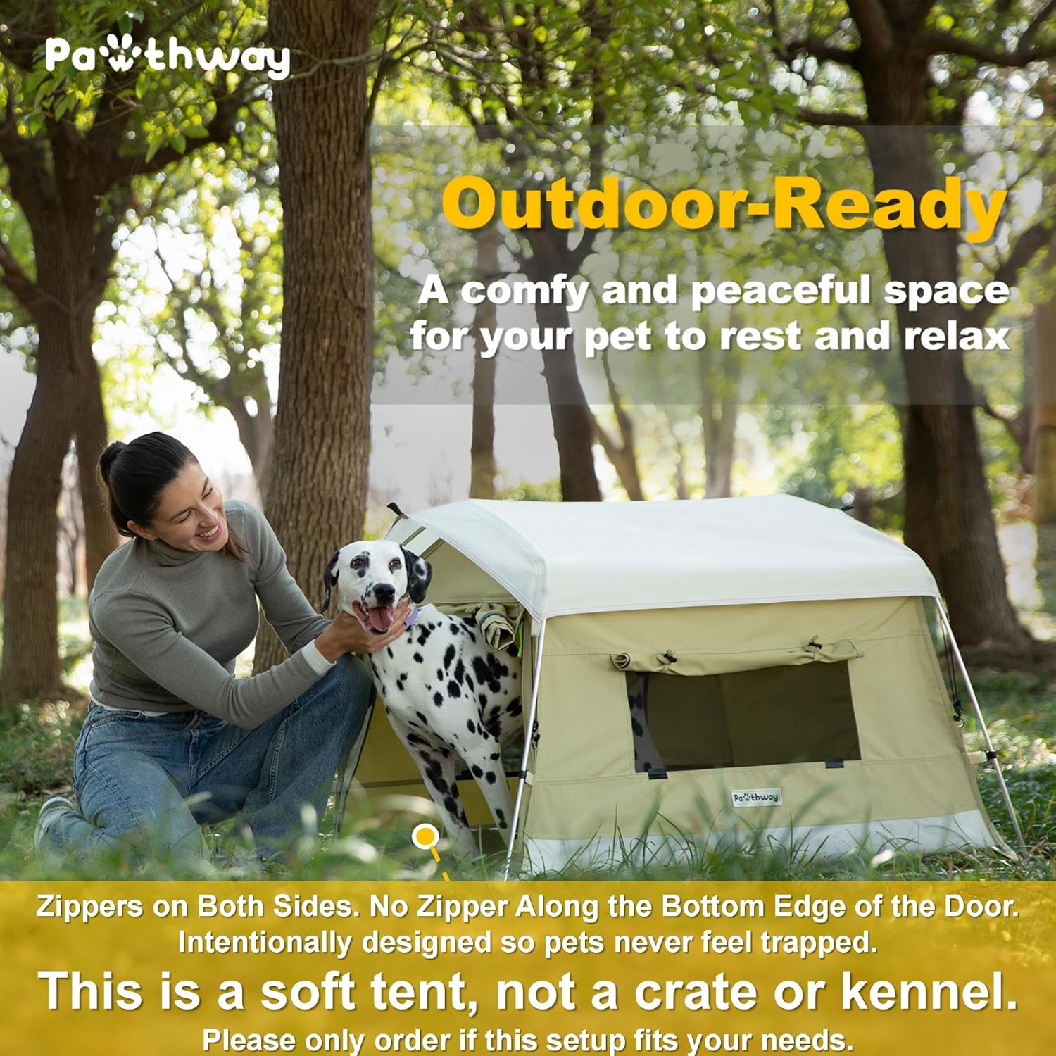 - This Is a Soft Tent, Not a Crate or Kennel: The door zips on both sides, with no zipper along the bottom edgeβso your pet can rest or hide without feeling trapped or stressed. This is an intentional design, not a flaw. Do not leave your pet unattended inside the tent, especially in outdoor or unfamiliar settings. Please only order if this setup fits your needs.