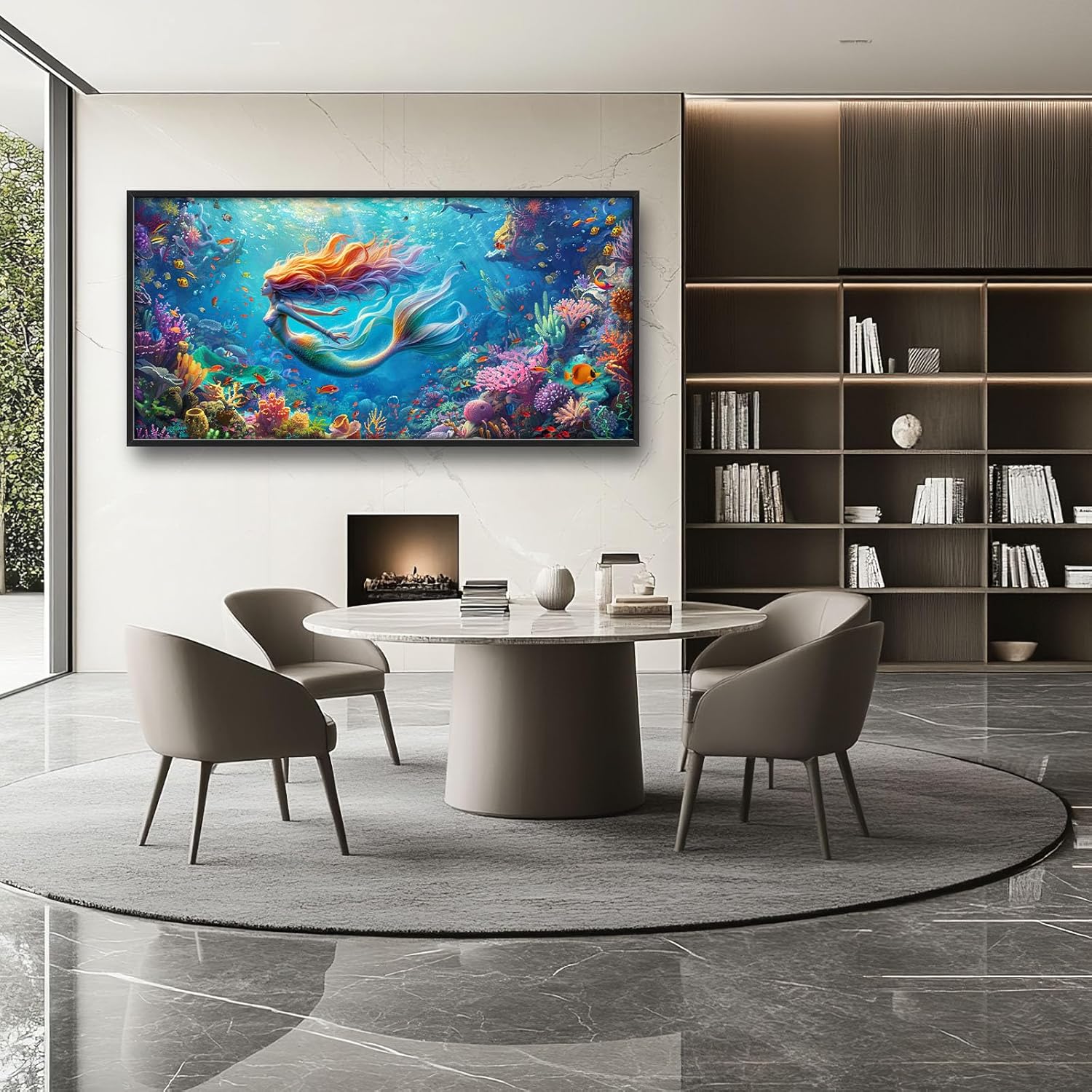- 【Unique Design】An enchanting mermaid gracefully swimming through the vibrant coral reefs, surrounded by colorful fish and marine life. The focus is on the mermaid's face, in the style of a digital art painting with brush strokes and texture. The colors are colorful and vivid, with beautiful lighting, resulting in a high-resolution illustration with high-quality details.