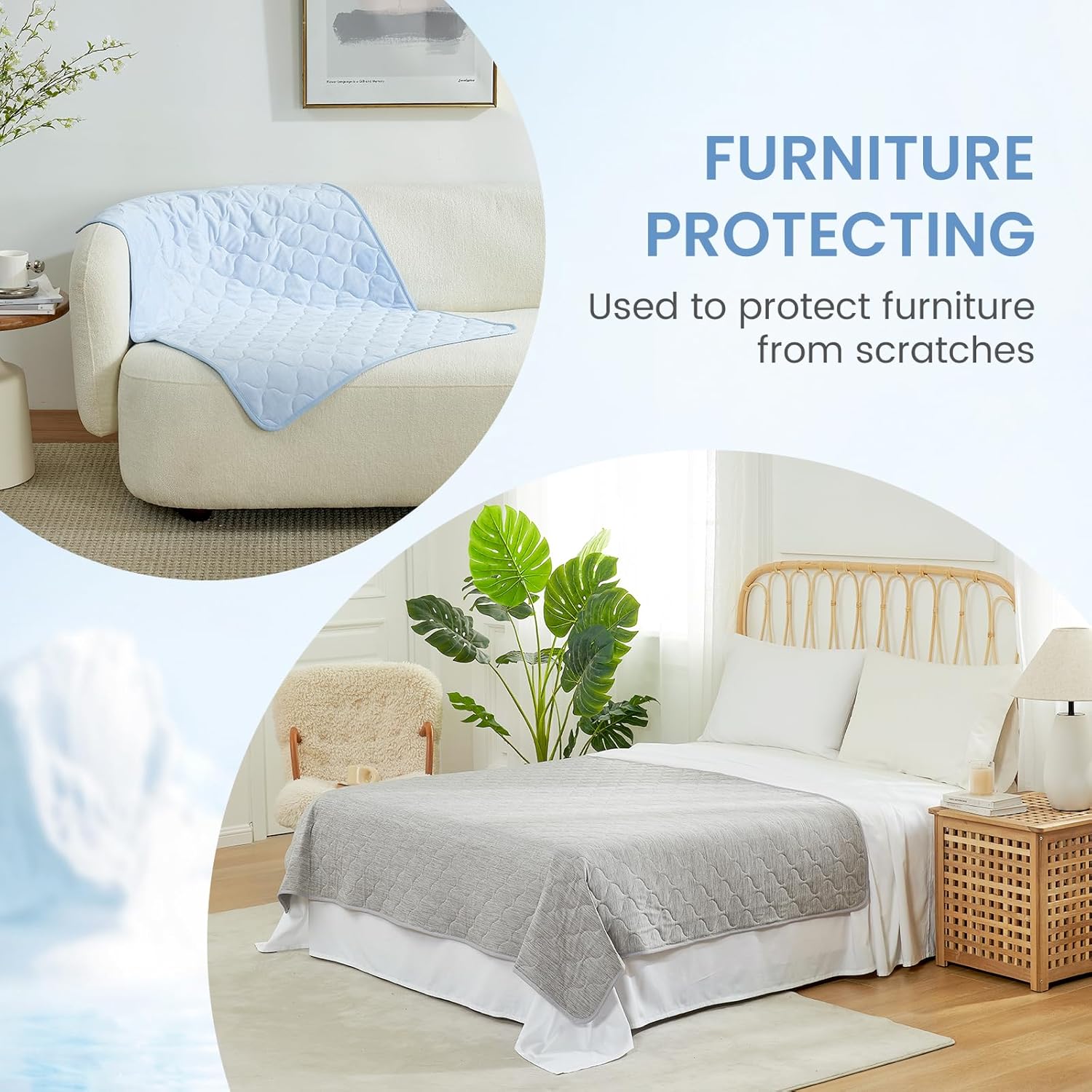 Cozy Bliss Leakproof Cooling Blanket for Large Dogs – Q-Max>0.4, Durable & Washable Dog Cooling Mat for Hot Weather, Soft Pet Throw & Couch Protector for Multiple Pets 60x80 Inch, Heather Cool Blue