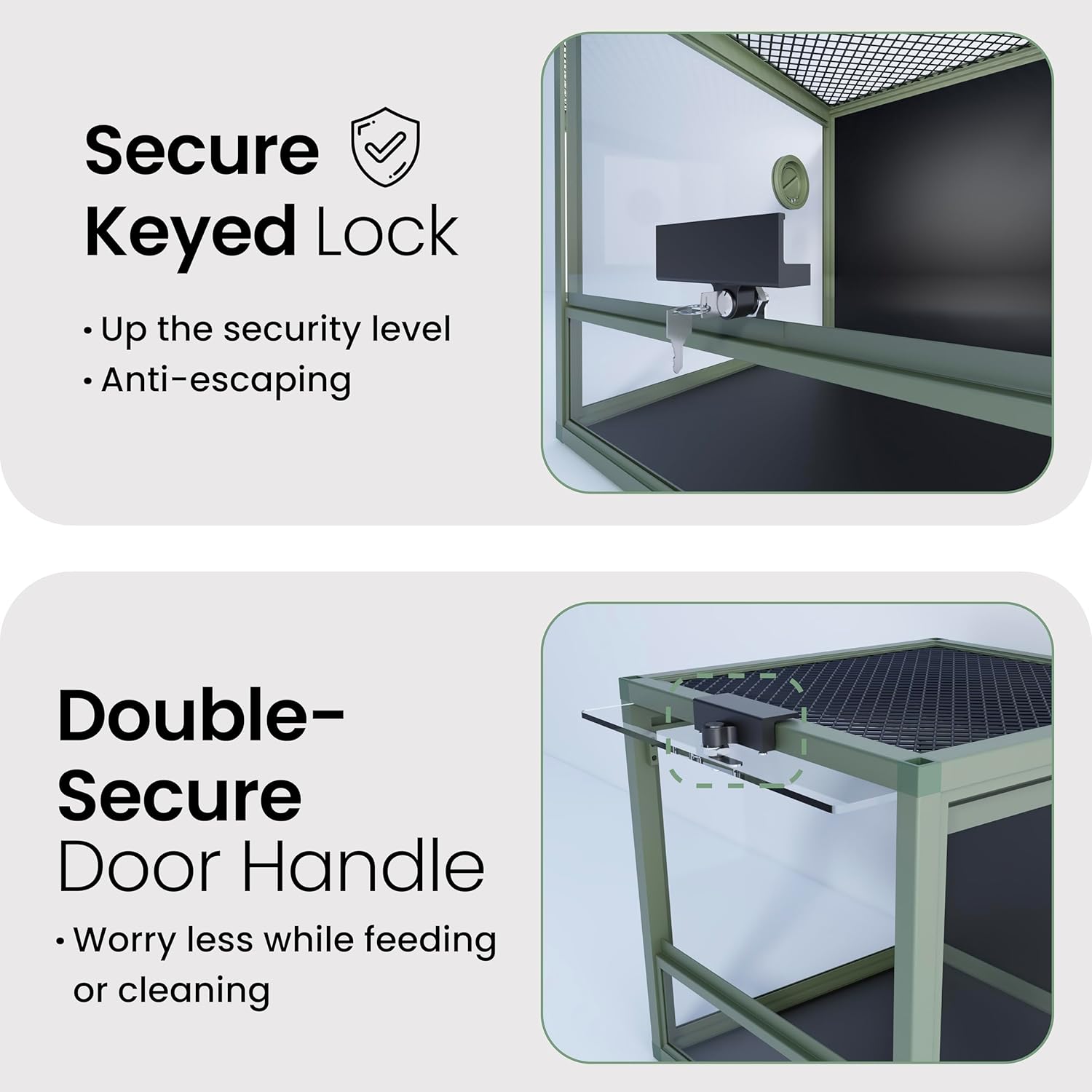 - γLock IncludedγA tempered glass door with a safety keyed lock to prevent escape and accidental opening by others. NO GAPS FOR ESCAPING with fully closed structure. Rigid tempered glass doors for extra safety.