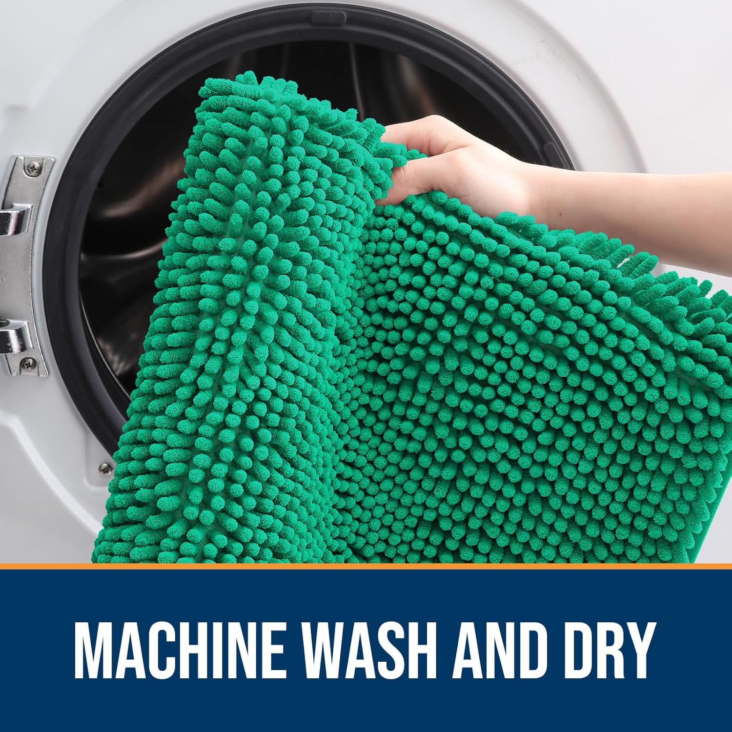 OLANLY Dog Door Mat for Muddy Paws 24x16, Absorbs Moisture and Dirt, Absorbent Non-Slip Washable Doormat, Quick Dry Chenille Mud Mat, Entry Indoor Entryway Carpet for Inside Floor, Emerald Green