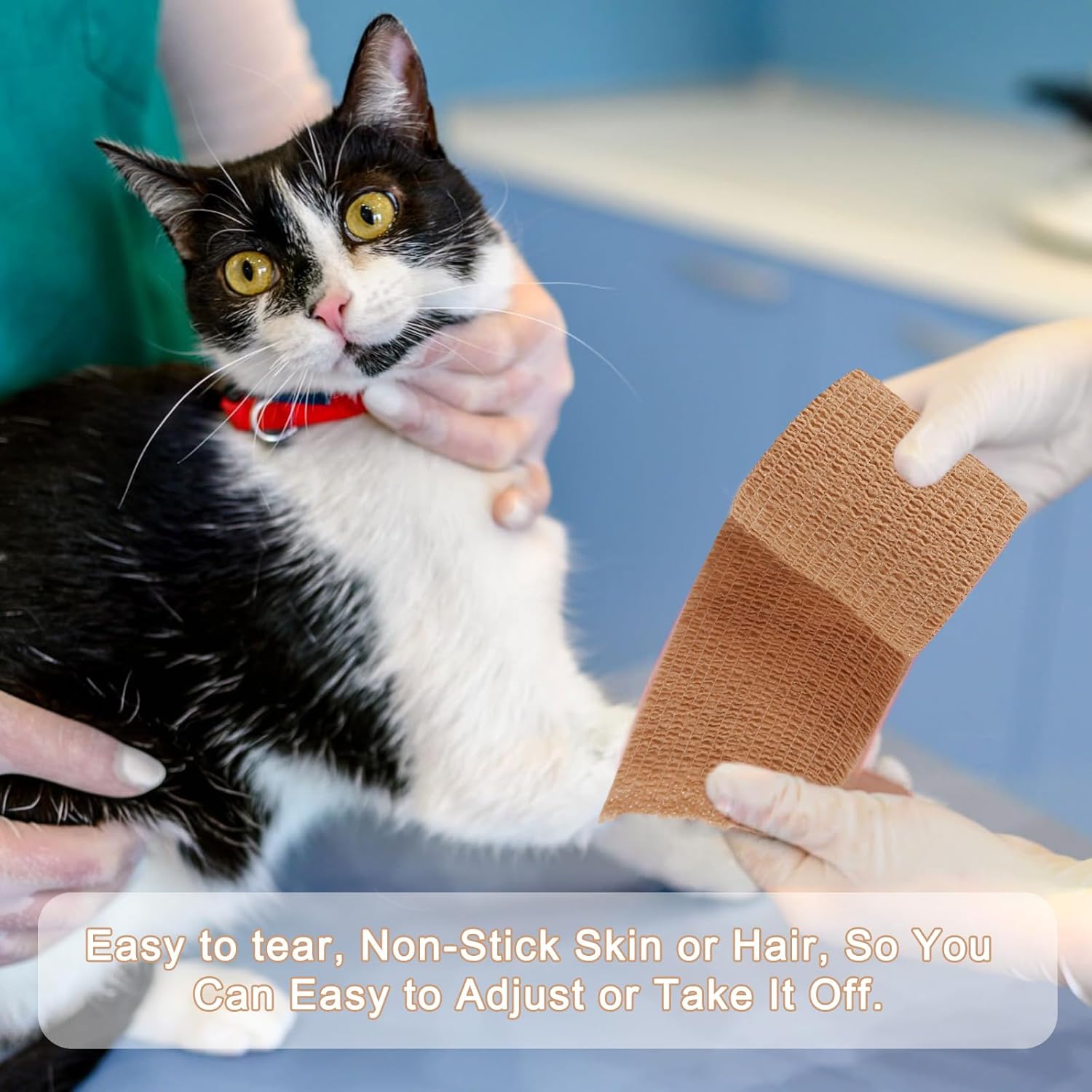 - 【No Residue & Effortless Application】Unlike ordinary tapes, this self-adhesive bandage sticks only to itself, not skin or hair. Easily tear b hand without scissors—perfect for quick fixes during sports, workouts, or pet emergencies. No pins or clips needed!