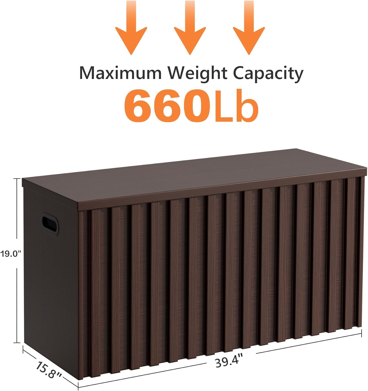 UEV Storage Bench,39.4" Wood Box, Storage Trunk with 2 Safety Hinges, Ottoman Storage Chest, Fluted Storage Bench for Bedroom, Entryway, Living Room (Walnut)