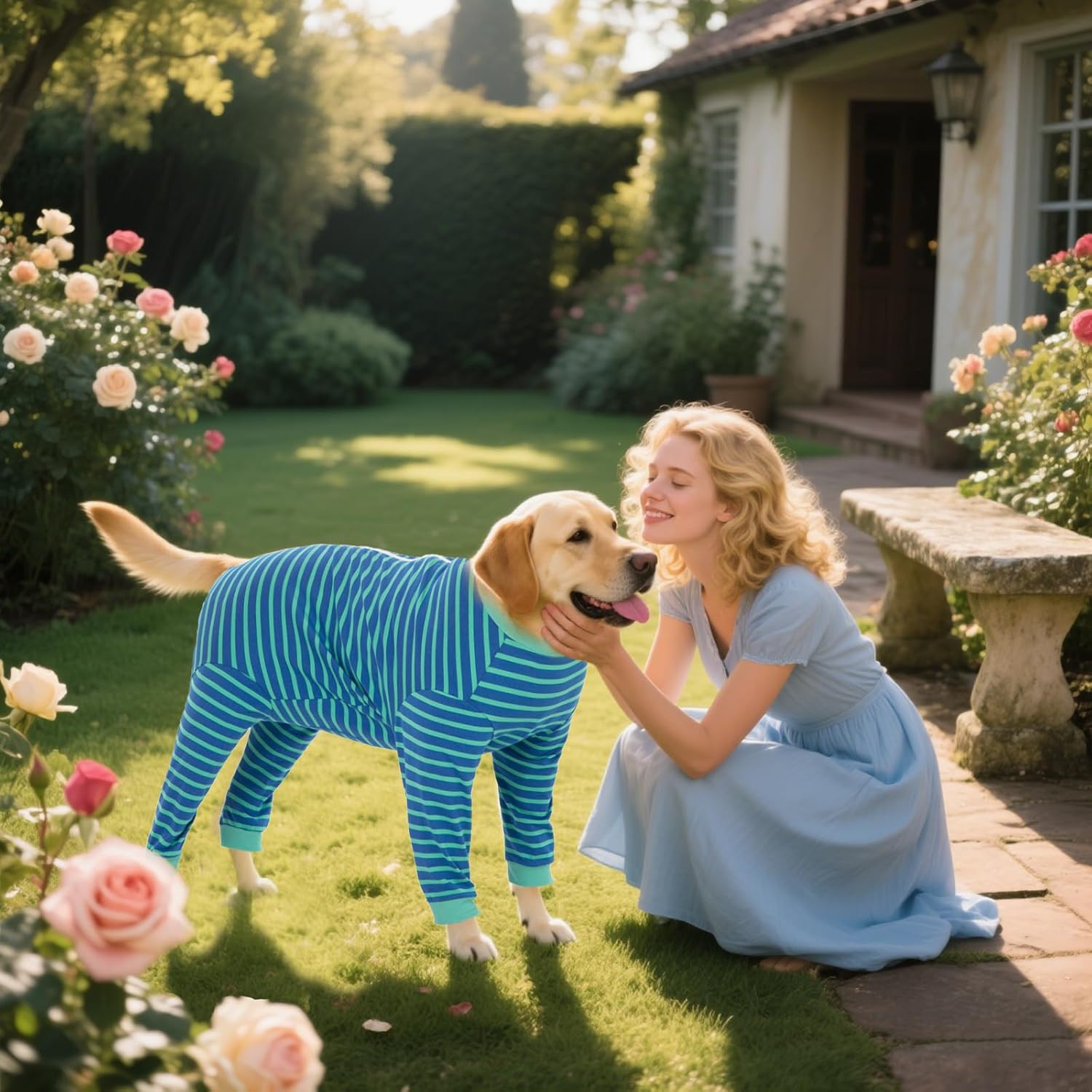 Yeapeeto Dog Onesie Surgery Recovery Suit for Large Medium Bodysuit Dogs Pajamas PJS Full Body for Shedding, Prevent Licking, Wound Protection, Cone Alternative… (Blue Green, 4X-Large (Pack of 1))