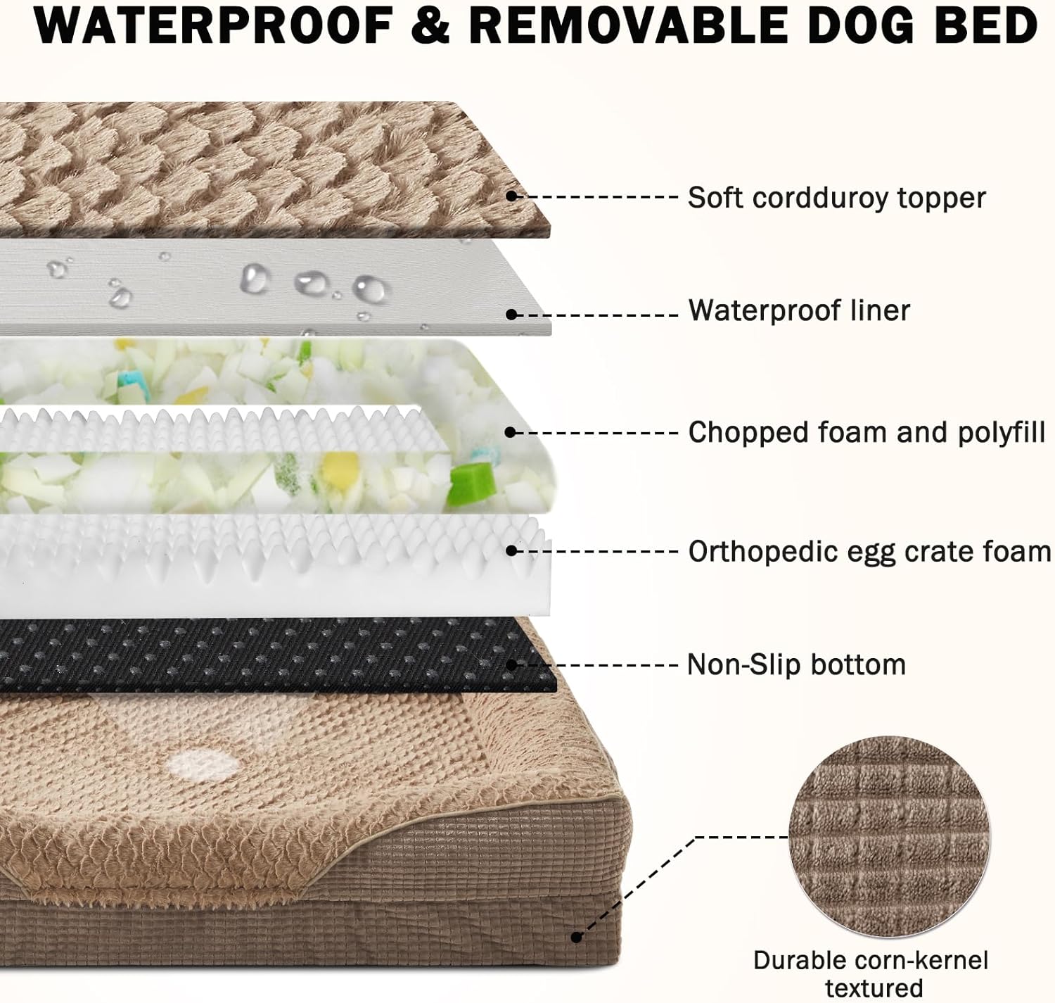 INVENHO Orthopedic Dog Bed for Extra Large Dogs, XXL Waterproof Egg-Crate Memory Foam Dog Couch with Washable Removable Cover, Waterproof Lining and Nonskid Bottom