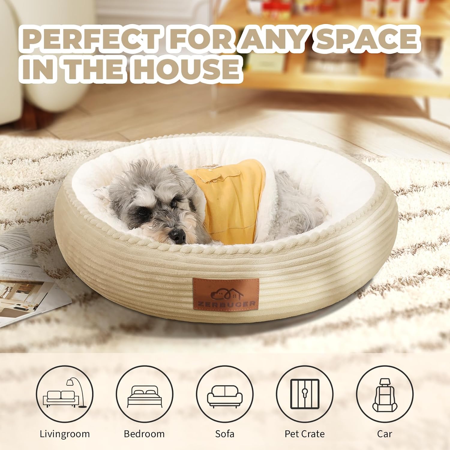 Cat Bed, 20In Dog Beds for Small Dogs, Calming Cat & Dog Beds for Indoor Pets, Pet Beds Comfortable Donut Round Ultra Soft (Camel, 23" L x 23" W x 6.5" Th)