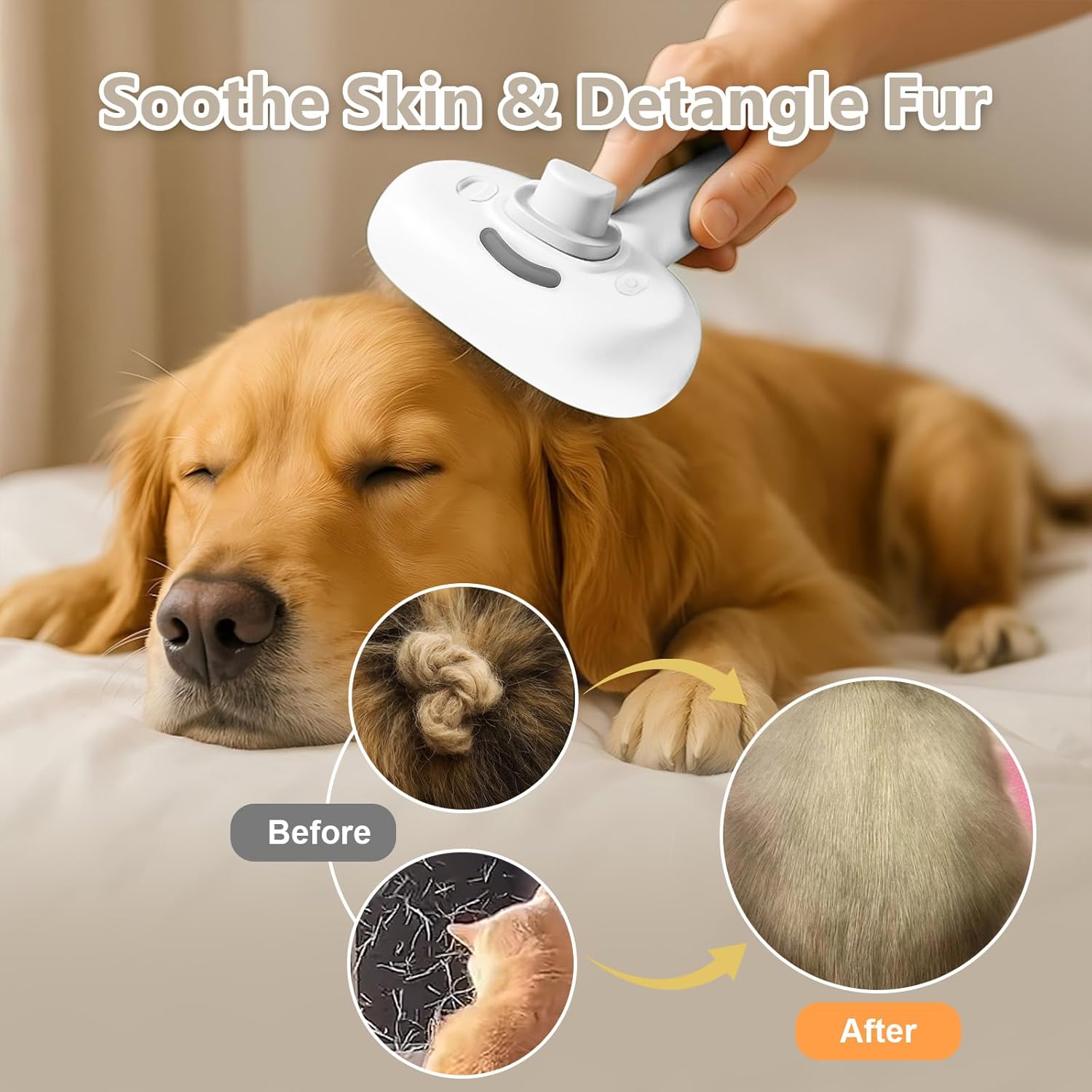 - Cool/Warm Mist Customization--Add room-temperature or warm water to the brush—no heating function. The mist adjusts to your water’s temperature to soothe skin, reduce static, and detangle fur. Mix with your favorite pet conditioner for extra shine!