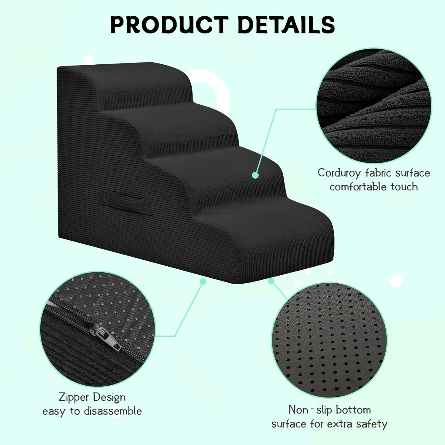 Dog Steps for Small Dogs, 3-Step Pet Ramp Stairs for High Beds and Sofa, Non-Slip Pet Stairs for Small Dogs and Cats, Removable and Easy to Clean Cover, Black