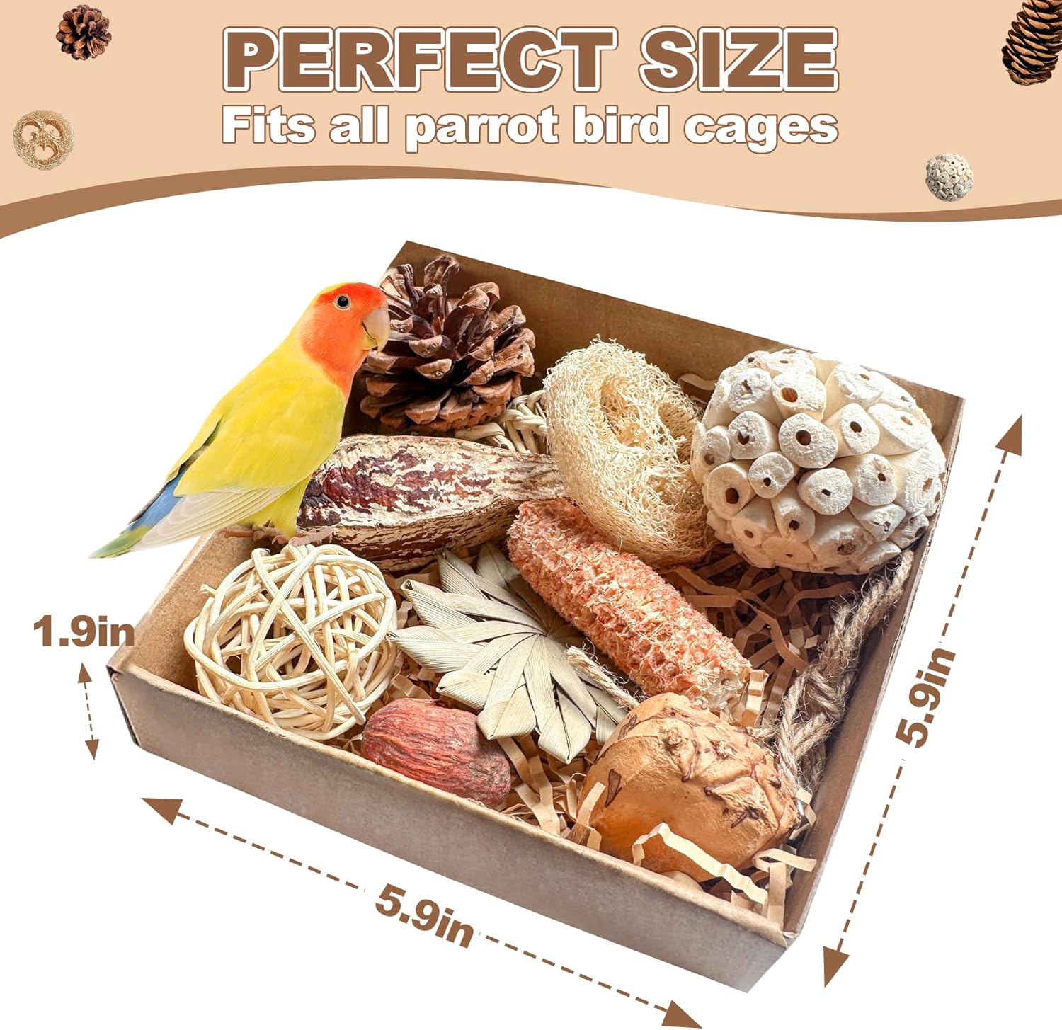 - πΏ IGNITE NATURAL FORAGING INSTINCTS: The Crimson-bellied Conure toys for medium birds unleash their inner explorer! From crinkly loofah sponges to rugged pine cones with wooden pegs, each piece in our 10-piece set mimics natureβs puzzles. Watch them peck, shred, and problem-solveβturning snack time into a jungle survival challenge