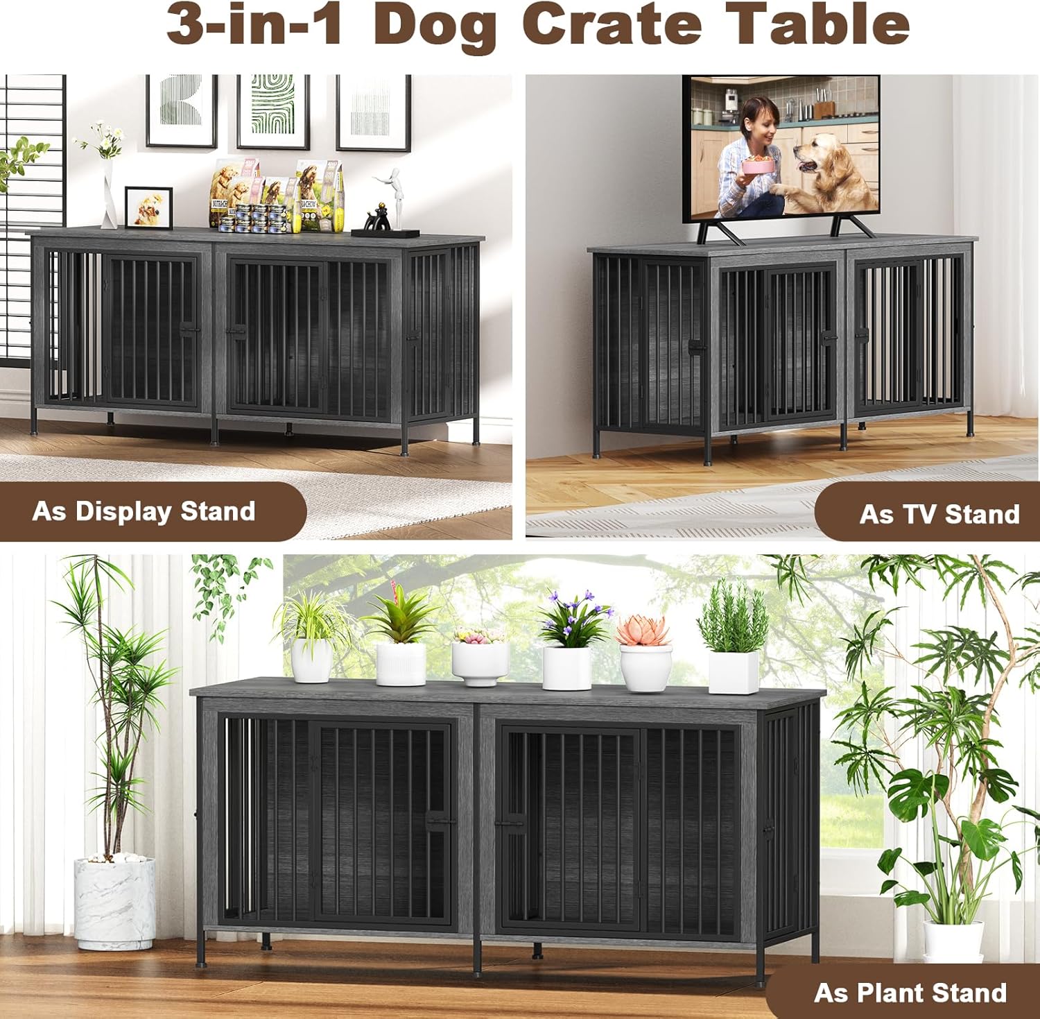- 【Provide Ample Space for Dogs】: With 63" W x 23.62" D x 27.56" H dimension, the dog kennel furniture can allows 2 dogs to have a comfortable and spacious living space, avoiding anxiety and unease due to limited space. The middle partition can be installed or removed according to your needs, the specific installation steps can refer to the detailed manual.