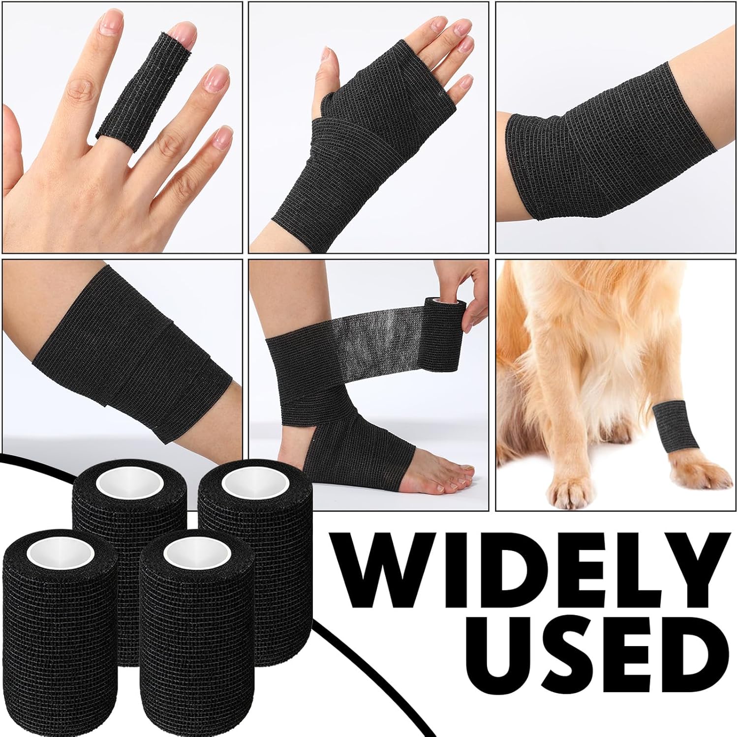 - Wide Range of Applications: the cohesive bandages can be applied to cover most of our body parts like ankle, wrist, finger, toe, elbow, knee and more; They can also work for pet, such as cat and dog, which is useful wrap for dogs and people