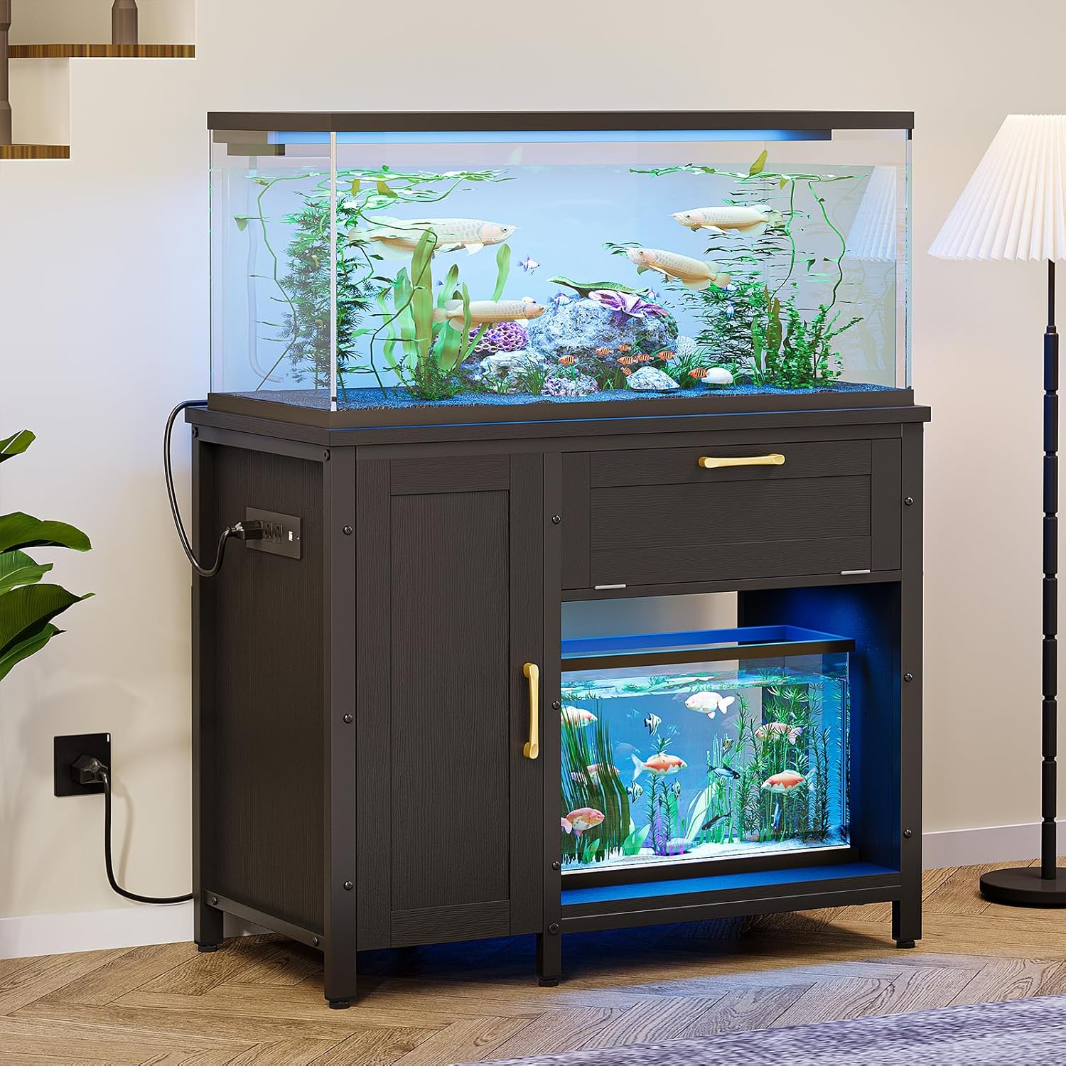Bestier 40-50 Gallon Fish Tank Stand with Power Outlet&LED Light, 37x18 Heavy-Duty Metal Aquarium Stand with Cabinet&Drawer for Accessories Storage, Suit for Reptile/Turtle Terrarium,660Lbs Capacity