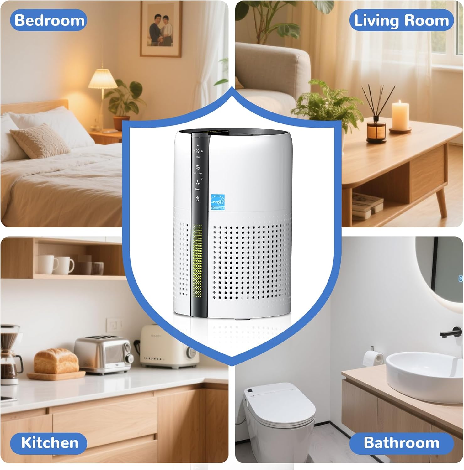 - πSmart Controls: Features 3 fan speeds, sleep mode, 2/4/8-hour timer, and 7-color mood light for customizable comfort. Operating as quietly as 22dB, this HEPA air purifier is perfect for nurseries, study rooms, and bedrooms, ensuring fresh air without disturbing sleep.