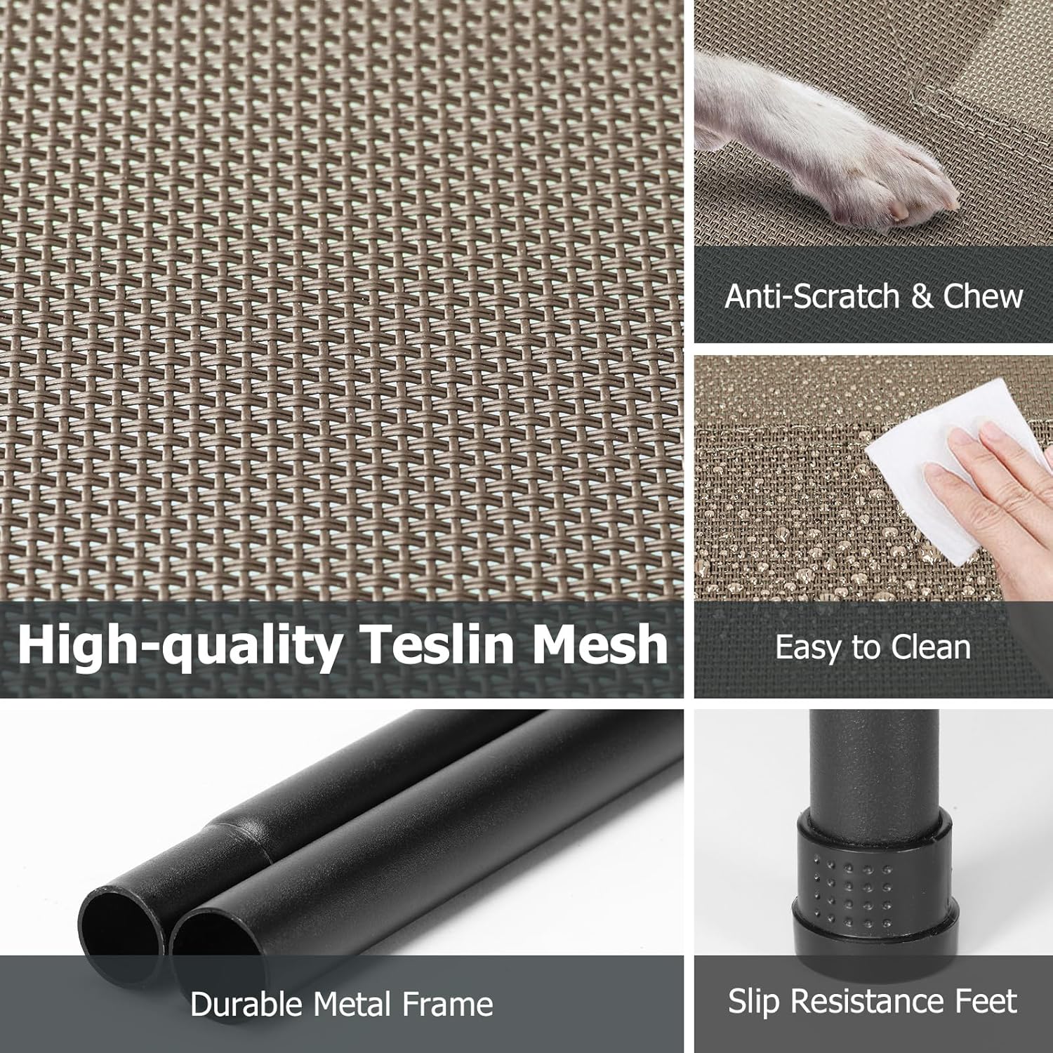 Elevated Dog Bed for Outdoor, XXL Raised Dog Cot Indestructible with Washable Mesh, Cooling Summer Pet Cot Chew Proof for Outside Camping Travel, 51 inch Brown