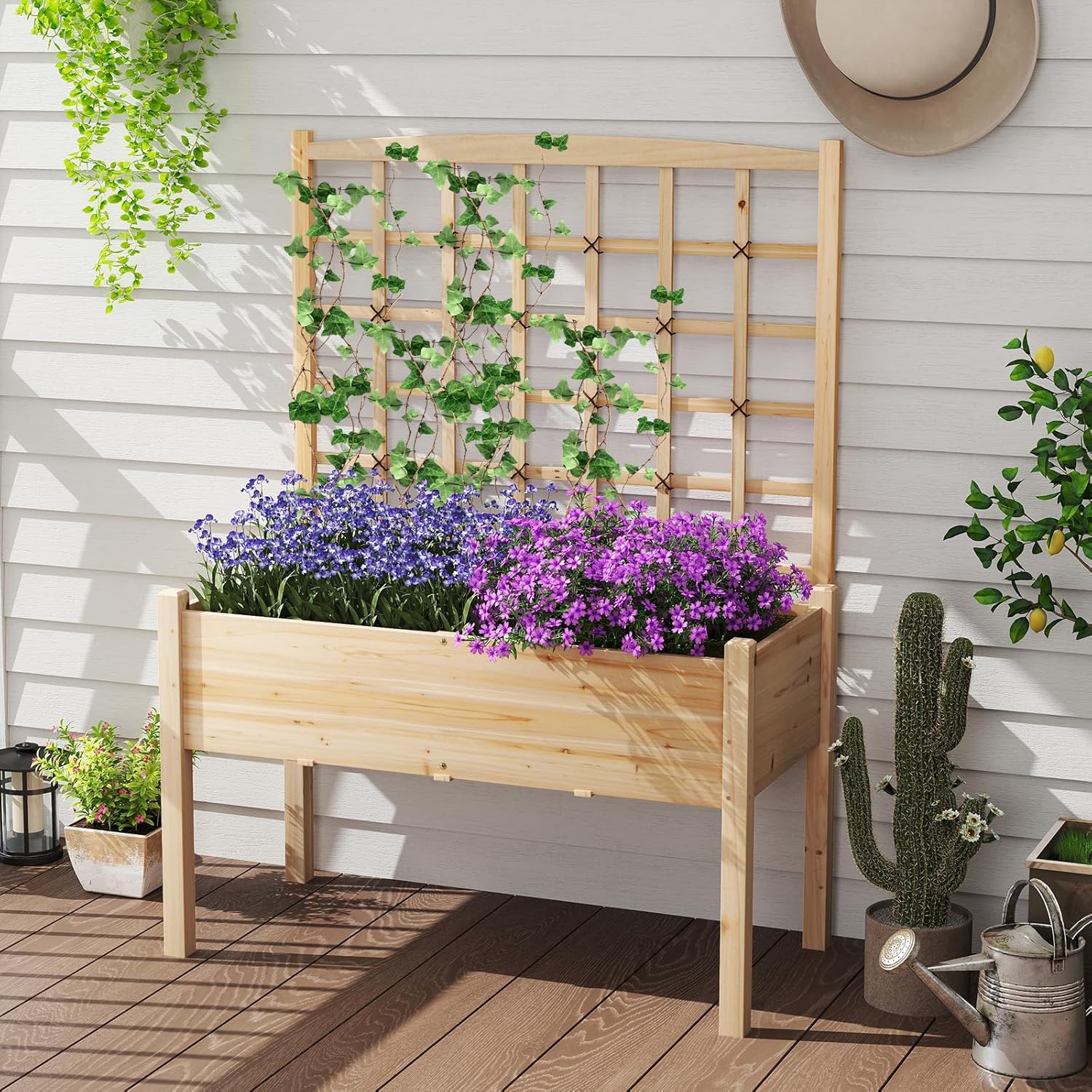- [Wide Application]: The 2-in-1 outdoor flower grow box maximizes the vertical space, making it an ideal choice for corners or small spaces. Additionally, the elevated planter box with trellis is suitable for indoor and outdoor settings, such as balcony, deck, garden or yard.