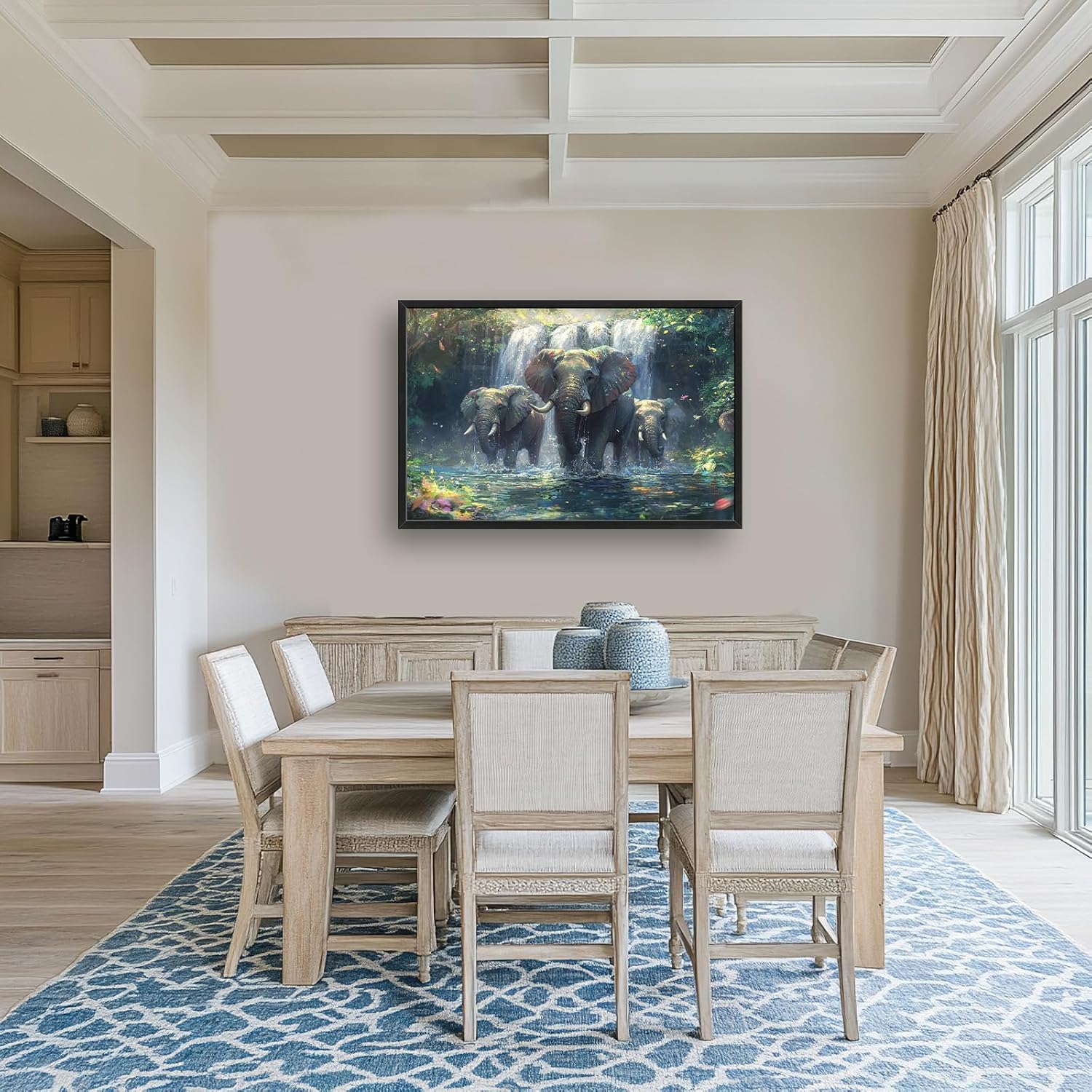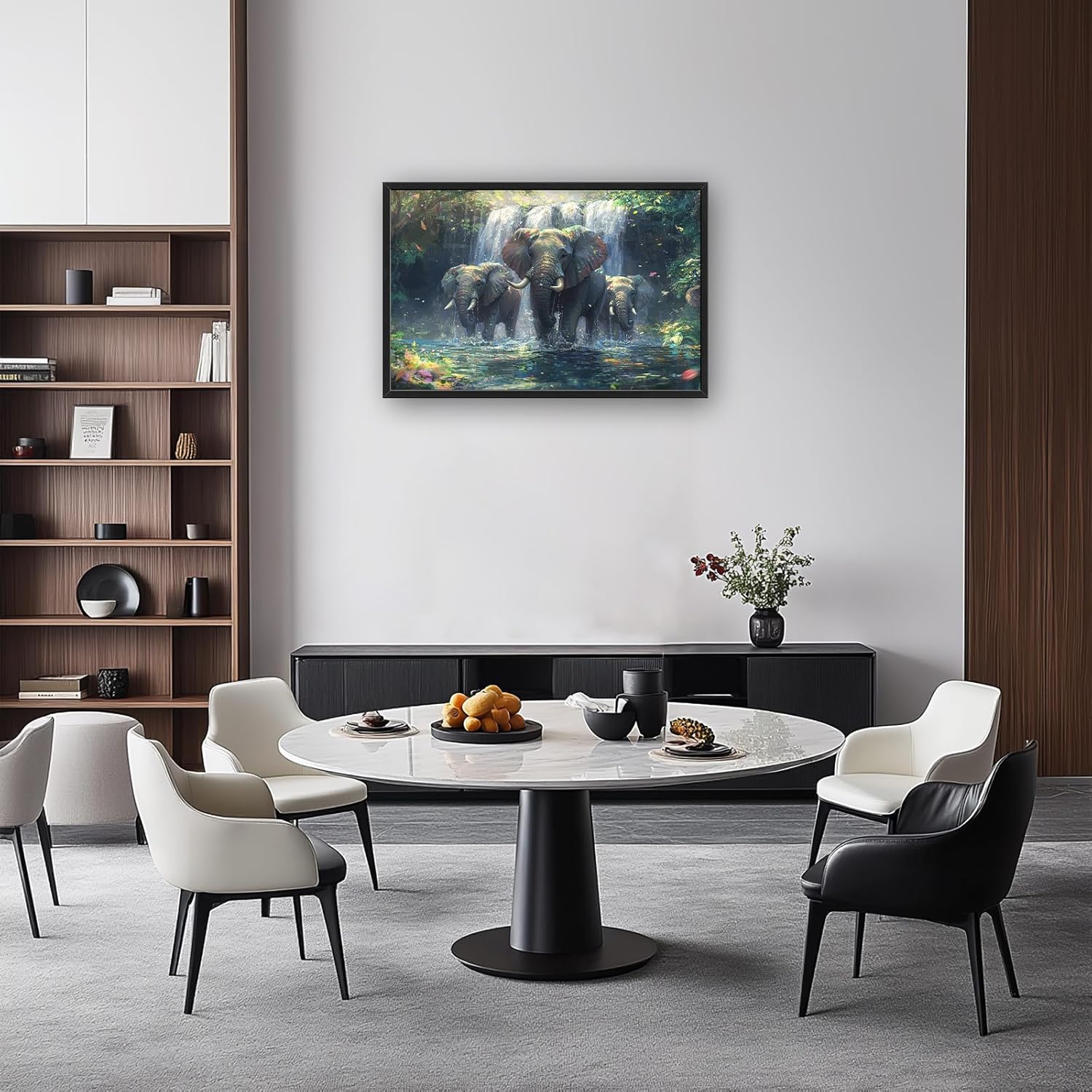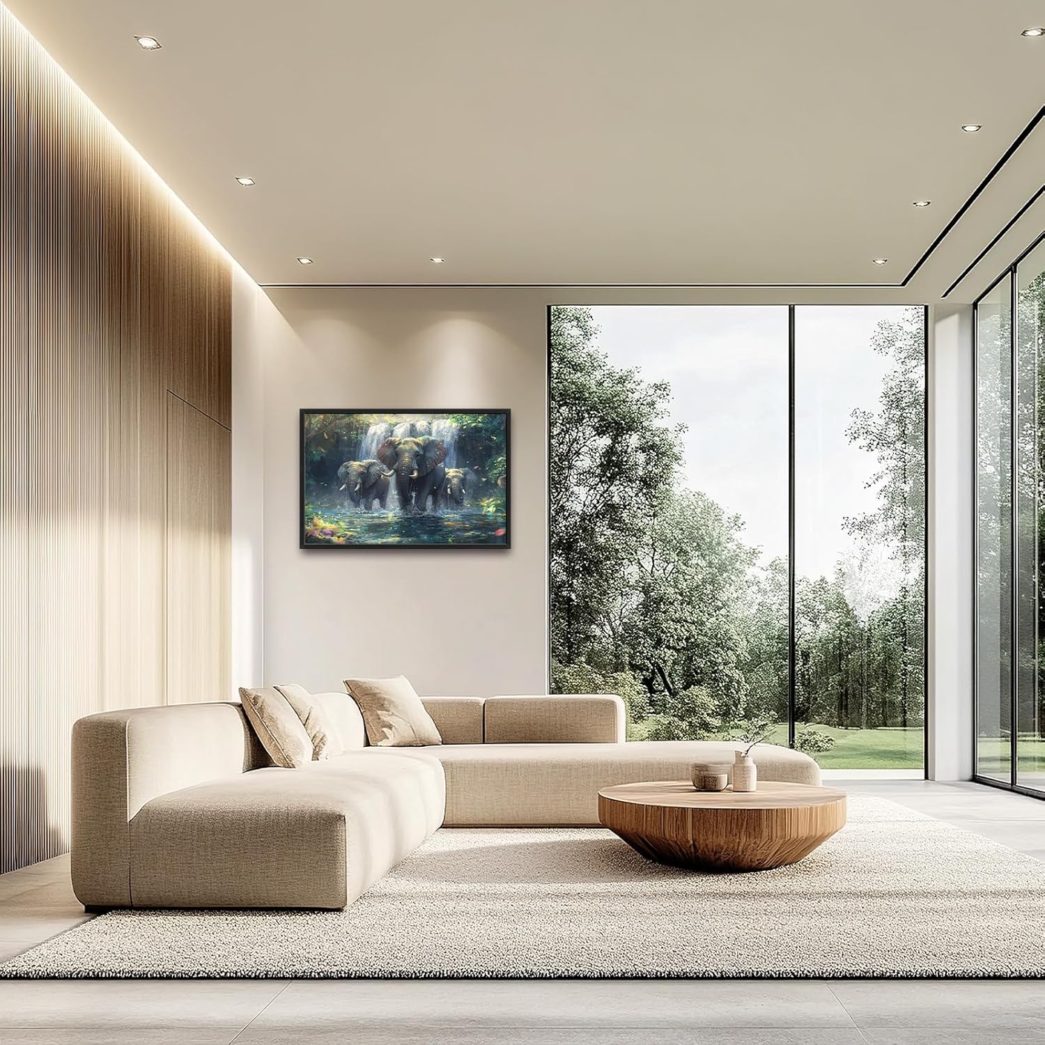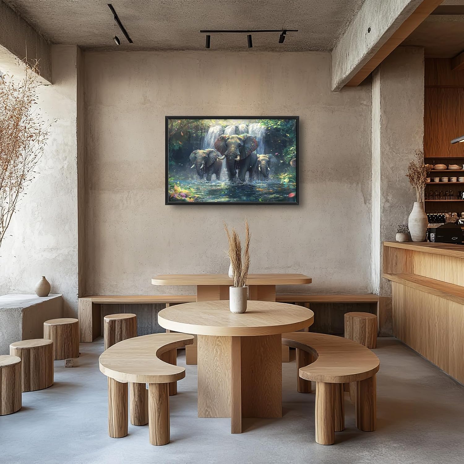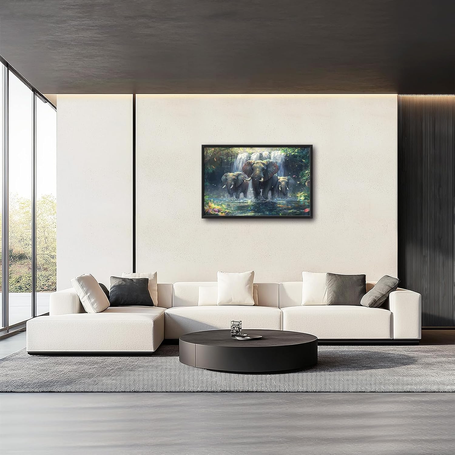 Large Elephant Wall Art for Living Room, Framed Oversized Forest Waterfall Wall Decor, Nature Landscape Canvas Painting Wildlife Artwork for Living Room Dining Room Bathroom Bedroom Office 36"x24"