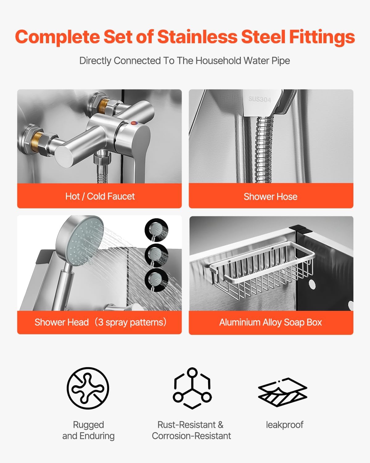 - Complete Accessories: The pet washing sink includes a showerhead, faucet, and a direct connection to a home hose for durability. It also comes with cleaning cloths, a squeegee, play balls, a brush, and gloves, allowing your pet to fully enjoy their bath time