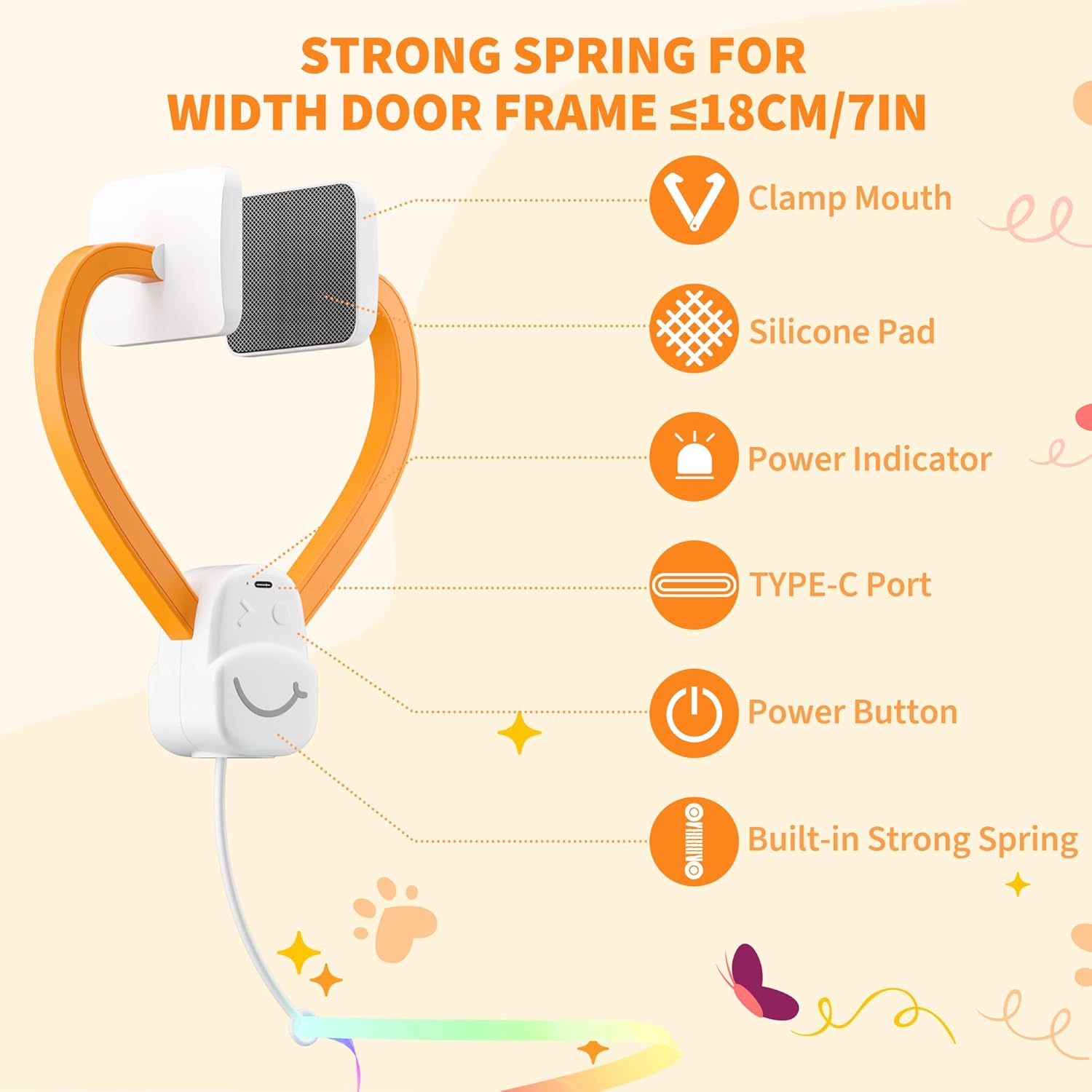 - 【Fit for 99% of Indoor Doors】The universal door clamp design is suitable for any indoor door (bedroom, living room, cat tree) with a width ≤18cm/7 inches, and installing it under the table can also bring interaction, and it can remain stable even when multiple cats play enthusiastically.