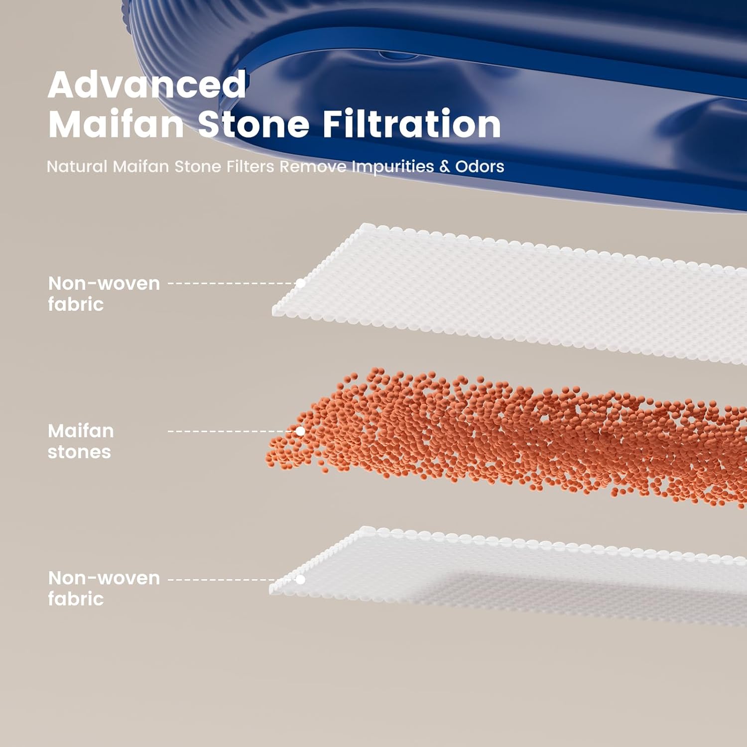 - 3-Layer Maifan Stone Filtration & UV β Non-woven fabric + natural maifan stone + non-woven fabric trap hair, dust, and impurities. and the Water Pump Built-in UV to keep the water hygienic. Includes 2 replacement filters(and thanks so much for our dear customer message. our filter products will be available for sale in as soon as two months).