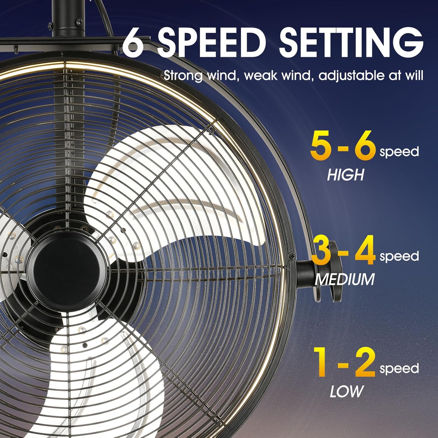 - γHigh Velocity AirflowγThe wall mounted fan has 6 wind speeds for you to choose from,which can be controlled by remote for added convenience.garage ceiling fan runs at max 2900 CFM,providing powerful and quiet airflow for large spaces such as garages,stores,covered patios,to meet your multifaceted needs!