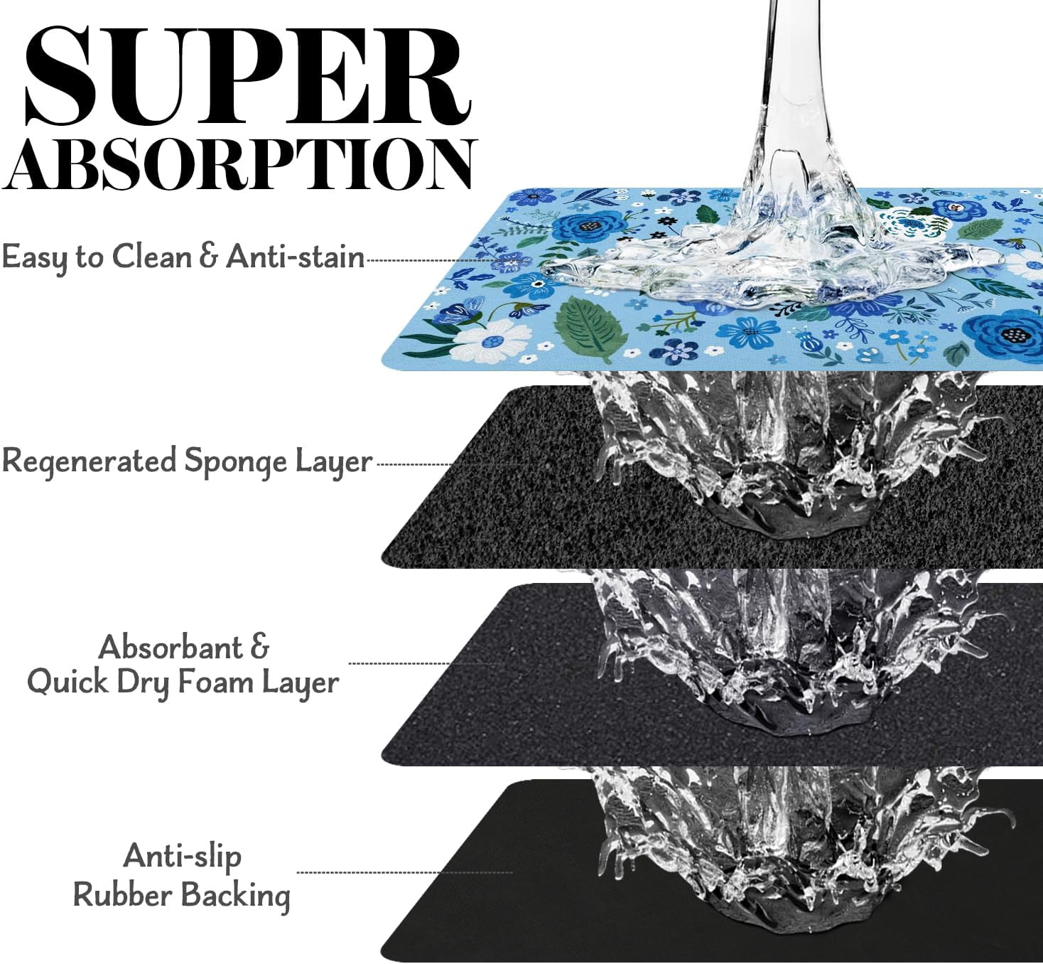 - Super Absorption: The dog mat for water bowl can absorb spilled water without leaving traces and dry quick, avoid wetting pet paws even for messy drinkers. And it does not attract pet hair like traditional silicone dog bowl mat.