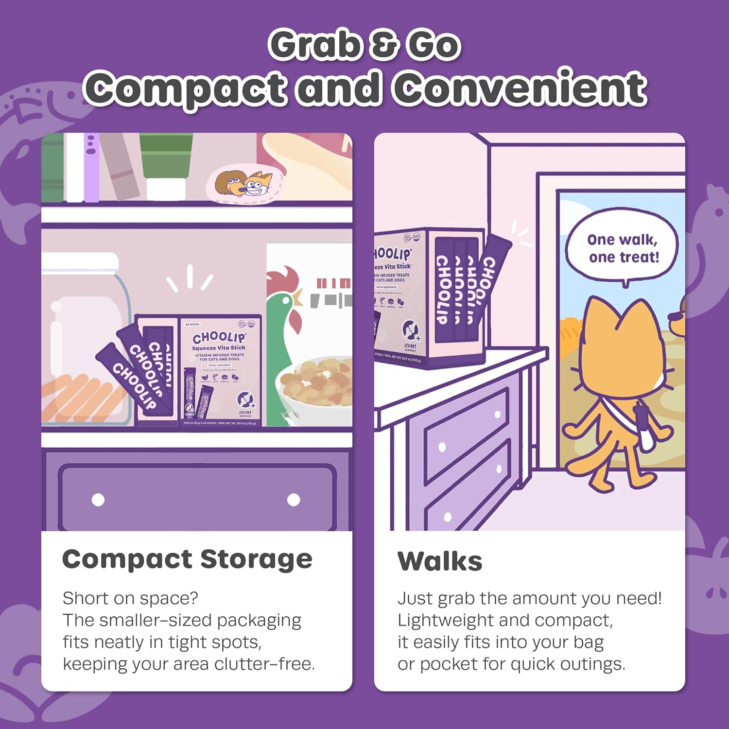 - COMPACT DISPENSER PACK: This Joint Support pack includes 49 sticks to treat your cat or dog. Itβs perfect for quick, grab-and-go use, easy to carry in a bag for trips, or convenient to keep near your pet supplies.