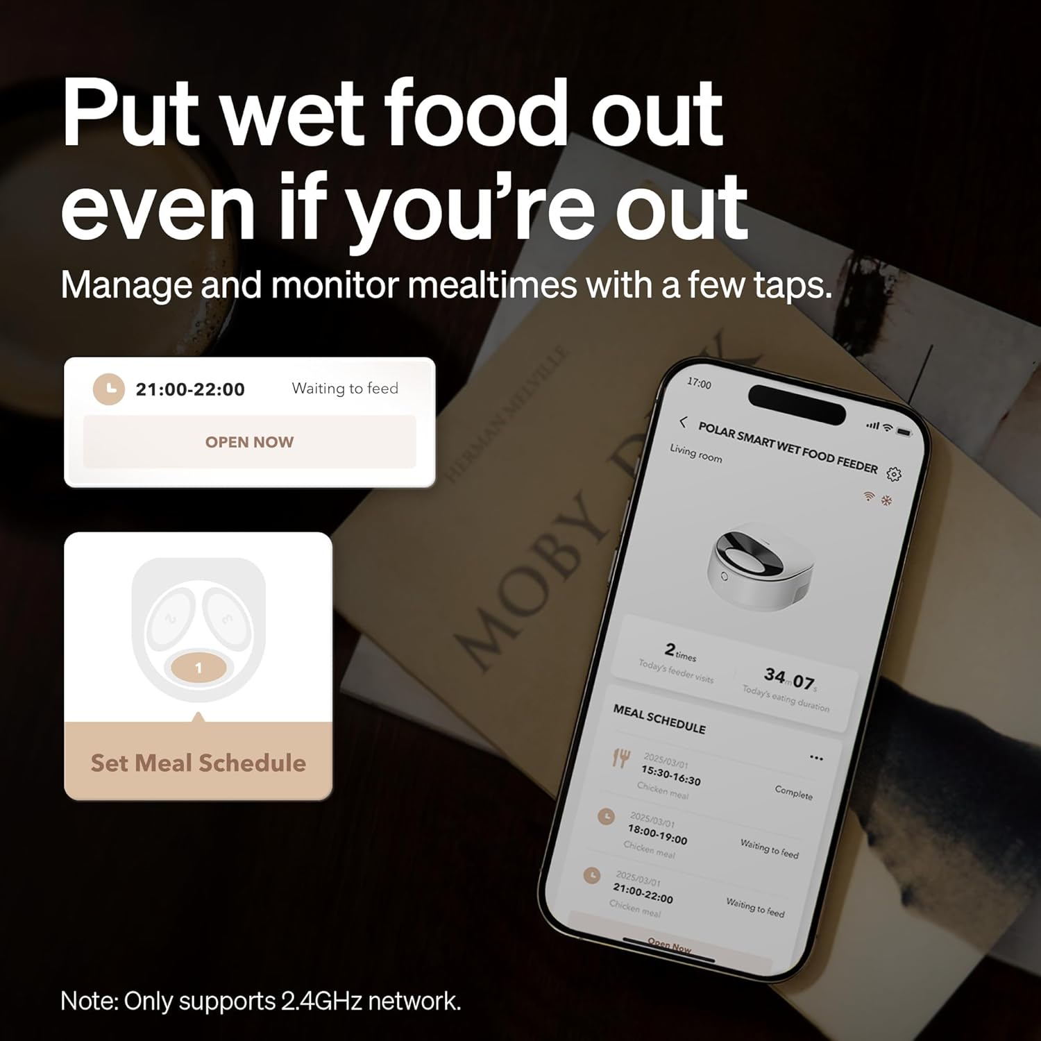 - Smart App Control for Hassle-Free Feeding: Schedule meals, monitor feeding status, and dispense food instantly from anywhere using the PETLIBRO's dedicated app of the automatic cat food dispenser for wet food(Only supports 2.4GHz network), the remote "Feed Now" feature lets you reopen a previous unfinished meal to ensure no portion goes to waste and open the next meal ahead of time. If you do not set any schedule, "Feed Now" also can help to open the lid anytime anywhere.