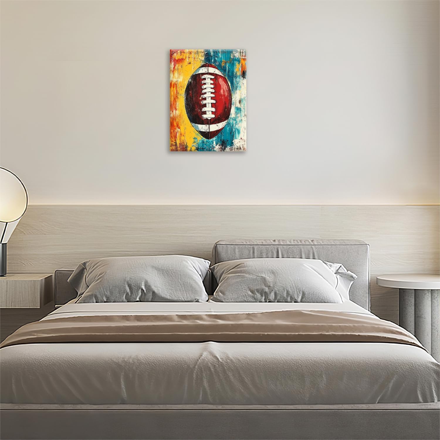 Graffiti Football Bathroom Pictures Wall Art, Rugby Sport Bathroom Wall Decor, Colorful Football Framed Painting Canvas Artwork for Bedroom Living Room Decorations 20"L x 16"W