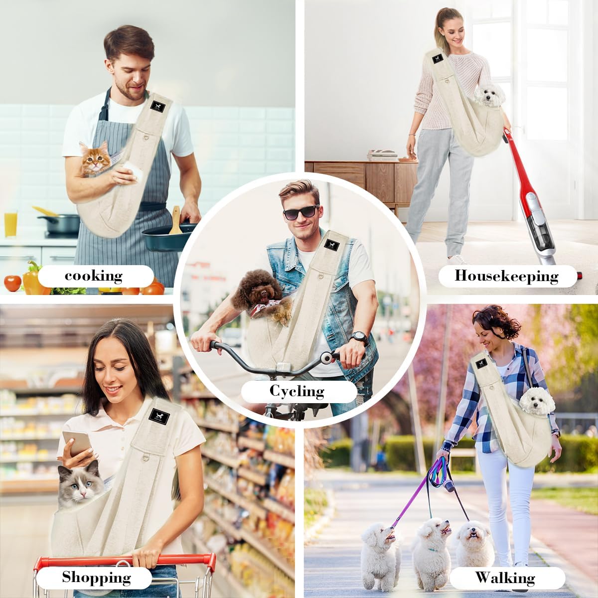 - Pressure-Relieving Comfort Design β PAWPUBBY dog carriers for small dogs features upgraded improvements. Compared to traditional dog slings, our puppy sling widens and thickens the shoulder straps, using mechanical design to evenly distribute pet weight, reducing shoulder and waist burden on the human body while alleviating shoulder fatigue. The soft inner lining mitigates vibrations during running or bumpy movements, protecting pet joints and reducing pressure on the spine and limbs.