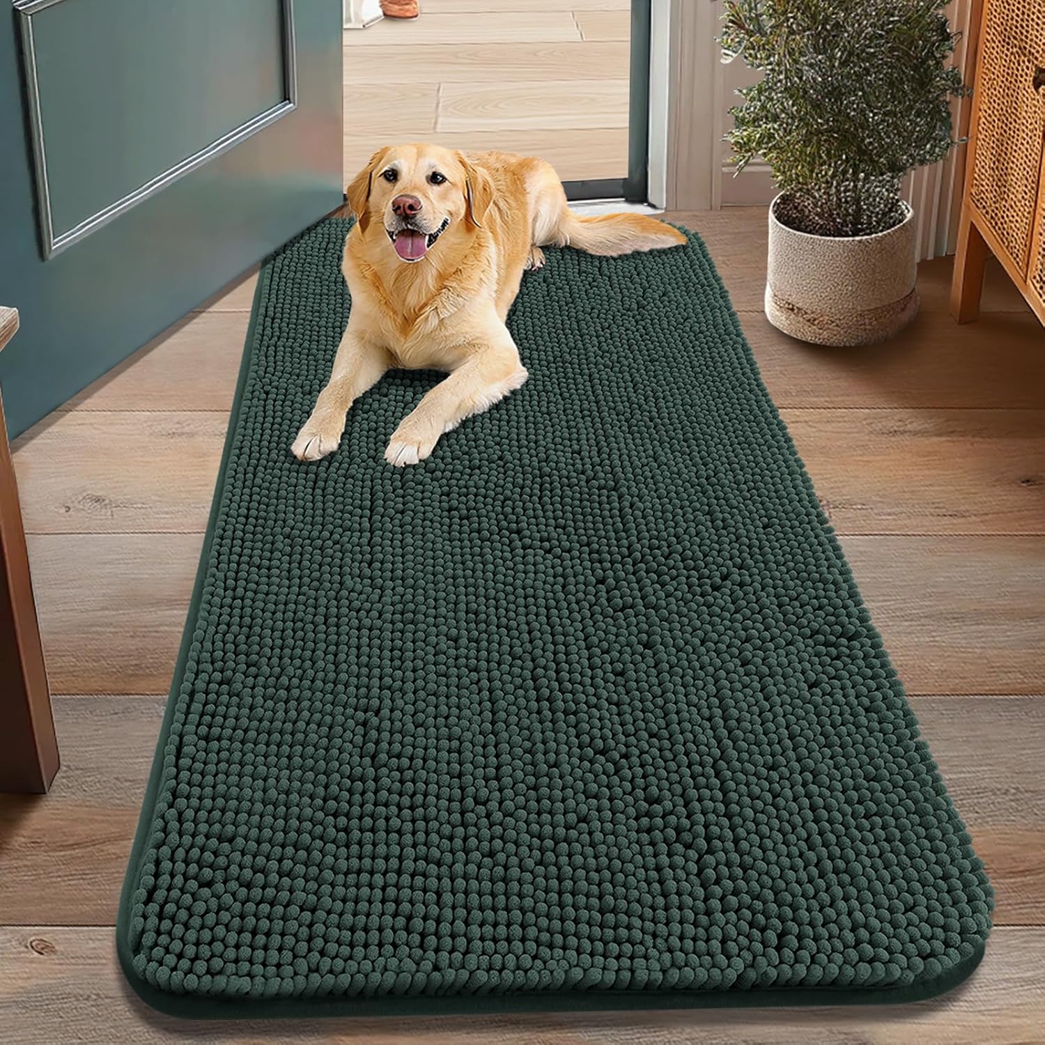Smiry Dog Door Mat for Muddy Paws 48x30, Absorbs Moisture and Dirt Doormat, Non-Slip Washable Quick Dry Chenille Front Door Mat Indoor Entrance, Entryway Carpet for Inside Floor, Green