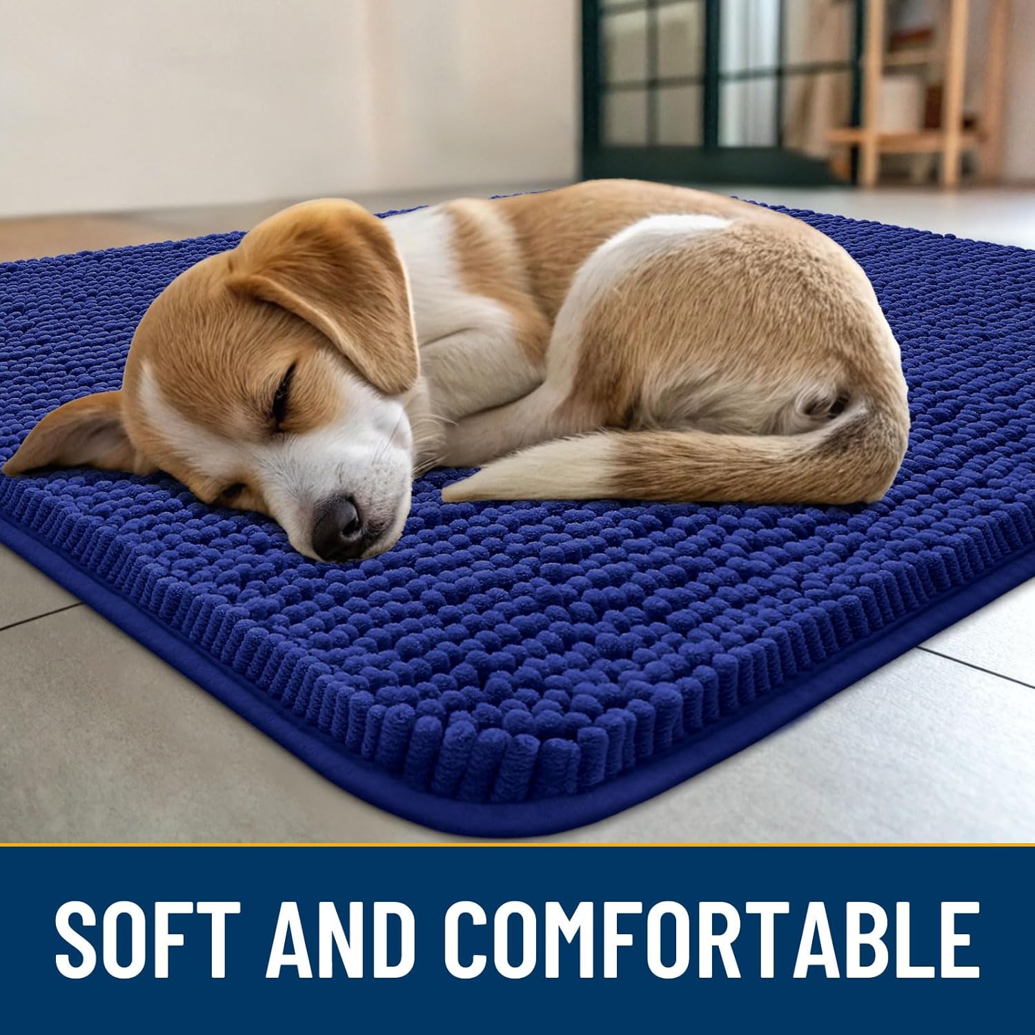 - [Absorbent and Dirt Trapper] High-density chenille dog mat, super absorbent and dirt-catching, whether wet after shower, muddy or moisture bring back by dogs, it can absorb well, so that you and your favorite pet can say goodbye to the wet and mud. It's an excellent choice for use as an entryway door mat, a welcome door mat or a dirt-trapping door mat.