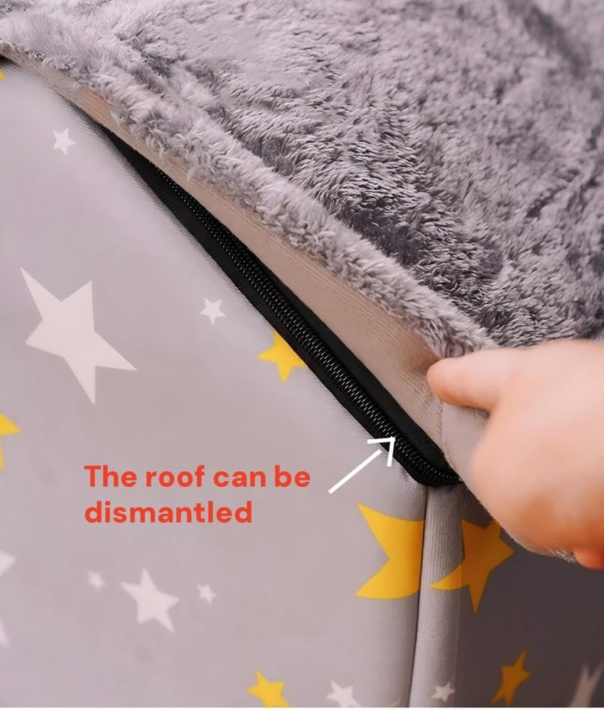 Scnbom Dog House Indoor Puppy Cave Cat Nest Kennel Pet Bed Portable Memory Sponge Foldable Houses with Cushion (Grey, XL:Size fits 18kg/40lbs (Pets))