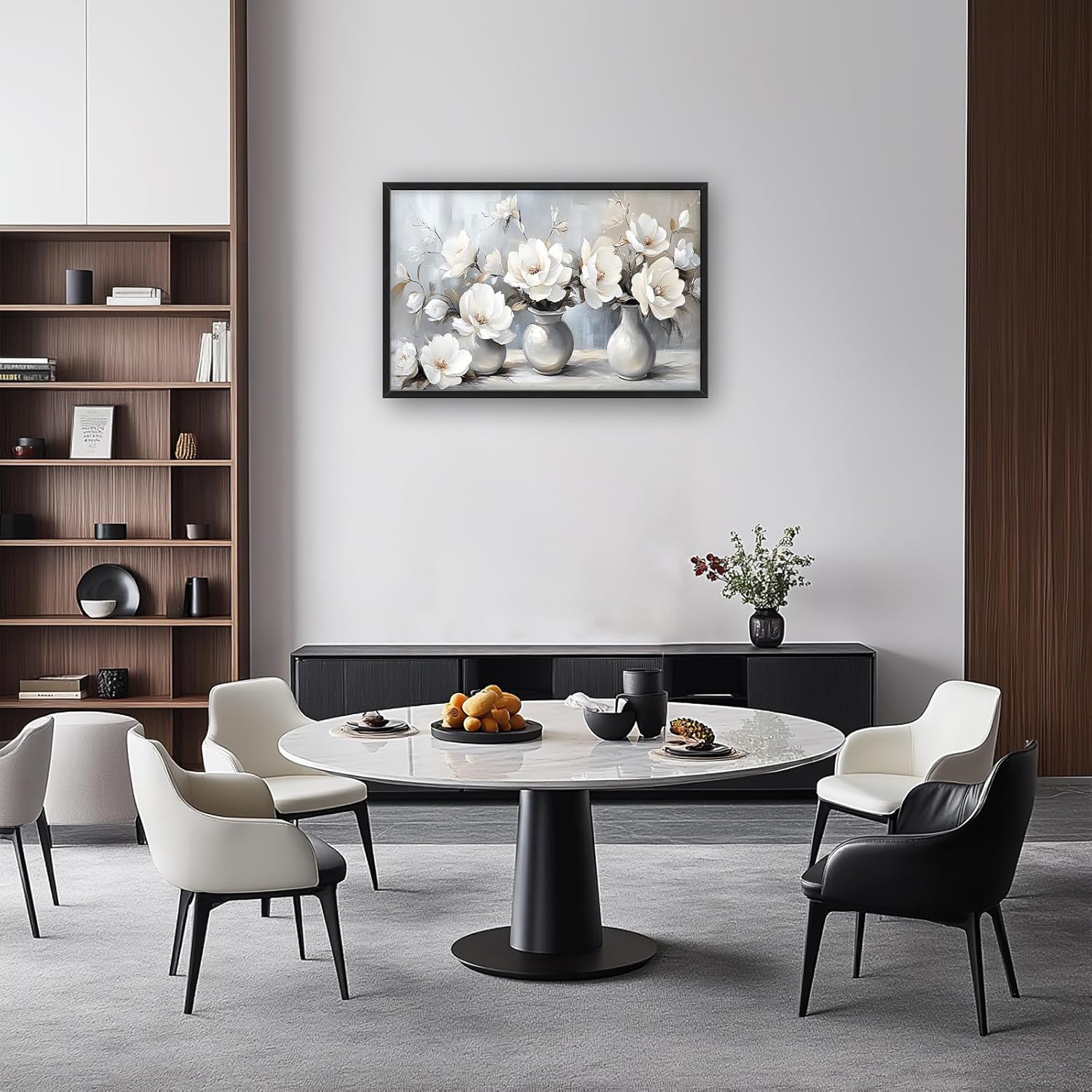 Large Farmhouse Floral Wall Art for Living Room, Framed Oversized White Flower Vase Wall Decor Grey Floral Canvas Painting Pictures Modern Artwork for Bathroom Bedroom Office Dining Room 36"x24"