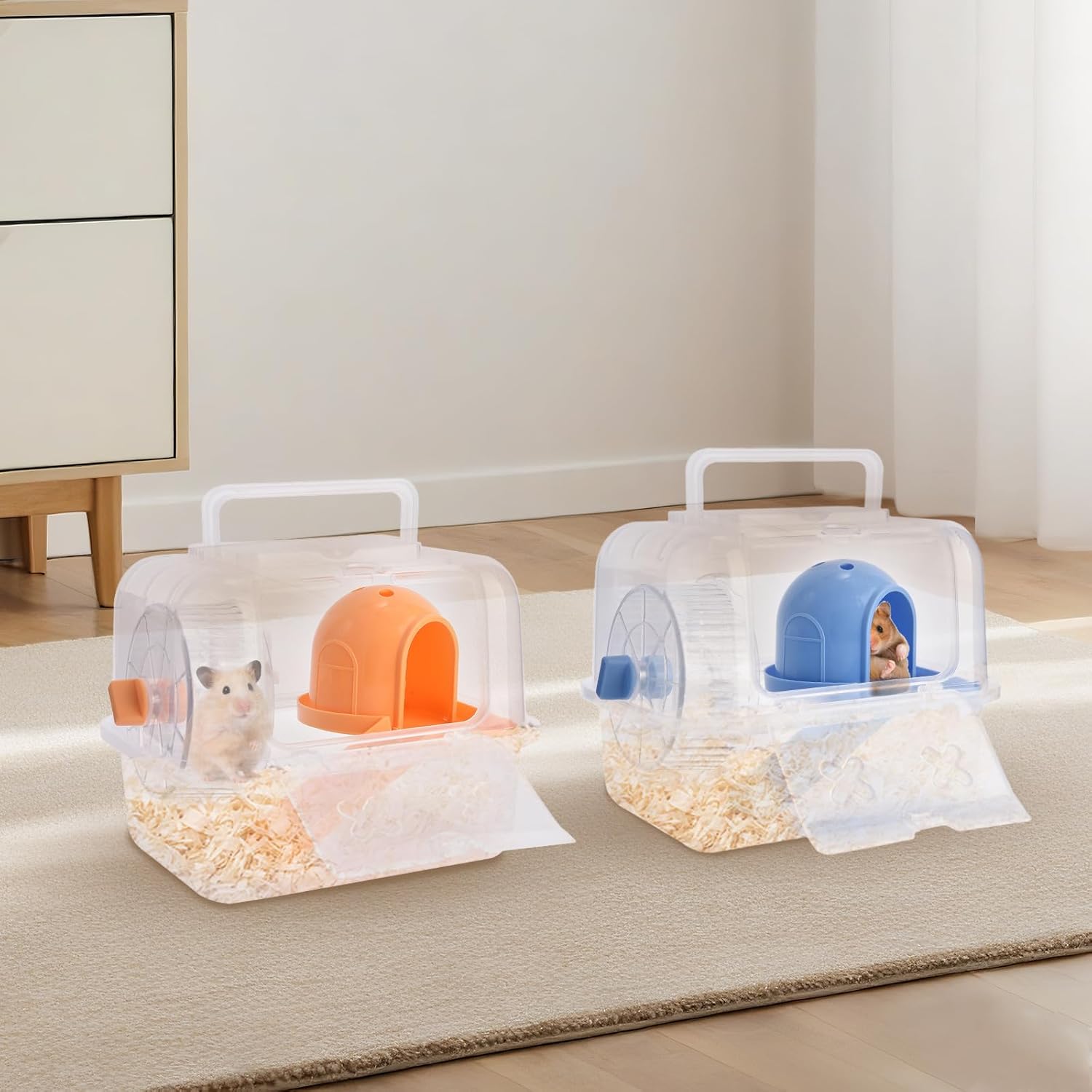 - 【Breathable and Safe】Our hamster carrier cage has multiple ventilation holes, and the material is transparent, allowing you to observe the hamster at any time.