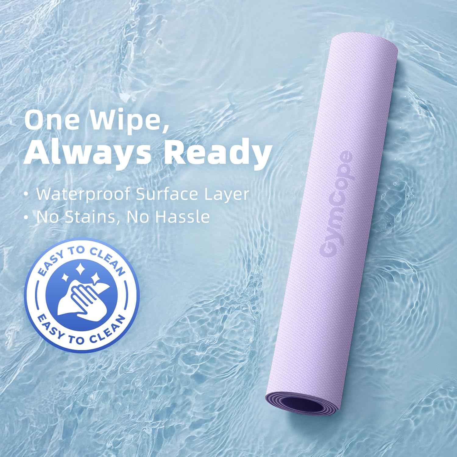 - [Waterproof & Easy to Clean β Wipes in Seconds] Closed-cell TPE resists sweat, moisture, and dirt. Just wipe with a damp cloth β no soaking or scrubbing β for a fresh, clean mat every session.